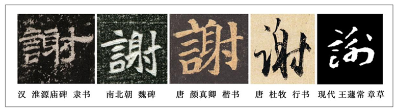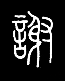 罗振玉在《增订殷墟书契考释》卷中说:“卜辞诸谢字从言、从两手持席。或省言,或省两手。”“知两手持席为谢者,《祭义》:‘七十杖于朝,君问则席。’注:‘为之布席堂上,而与之言。’正义:‘布席,令坐也。’此从两手持席者,盖臣于君前,不敢当坐礼,故持席以谢也。”即老臣双手持席,婉辞君王赐坐之礼。故谢为辞。篆文由会意字变为形声字。从言,射声,是战国才有的后起字。