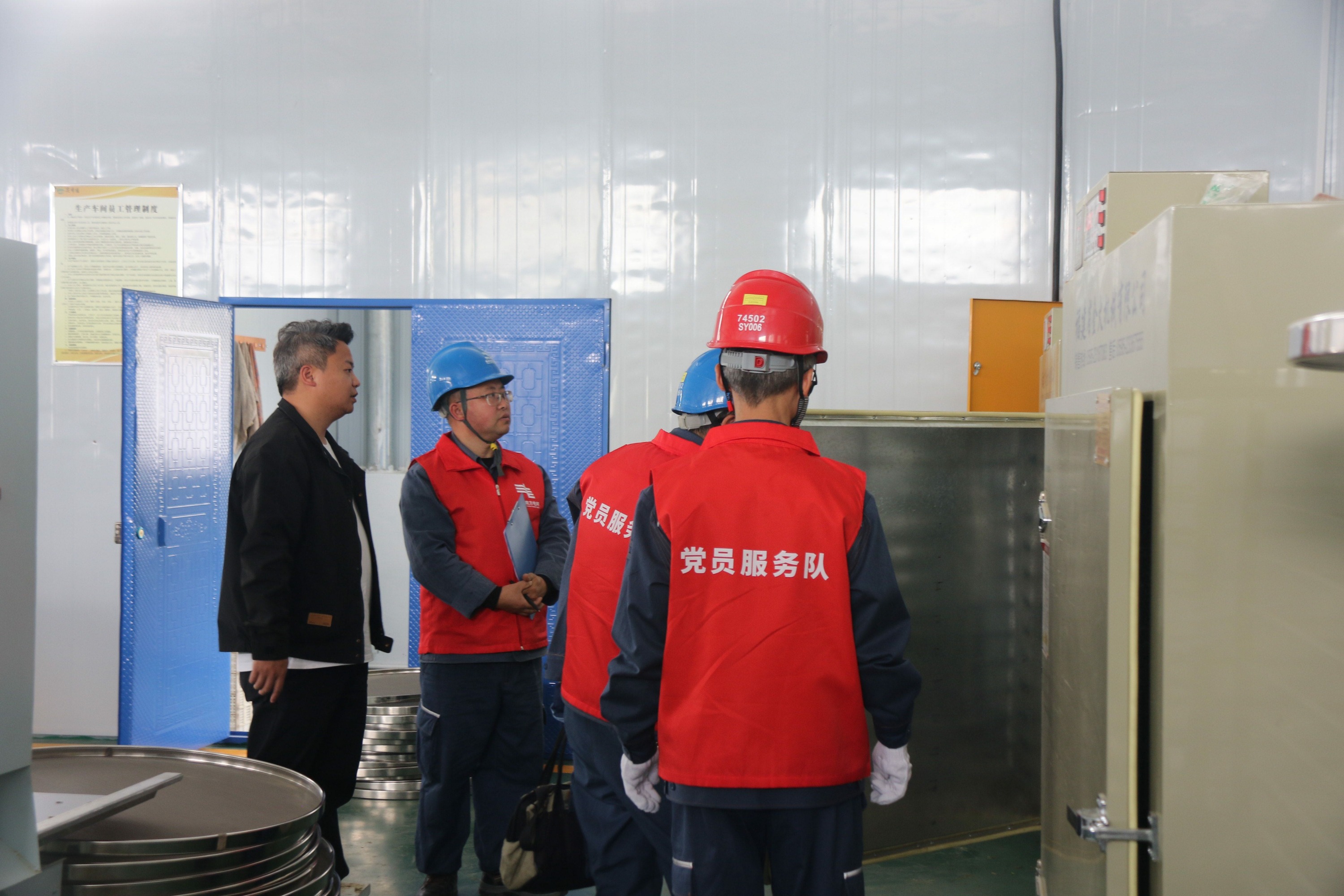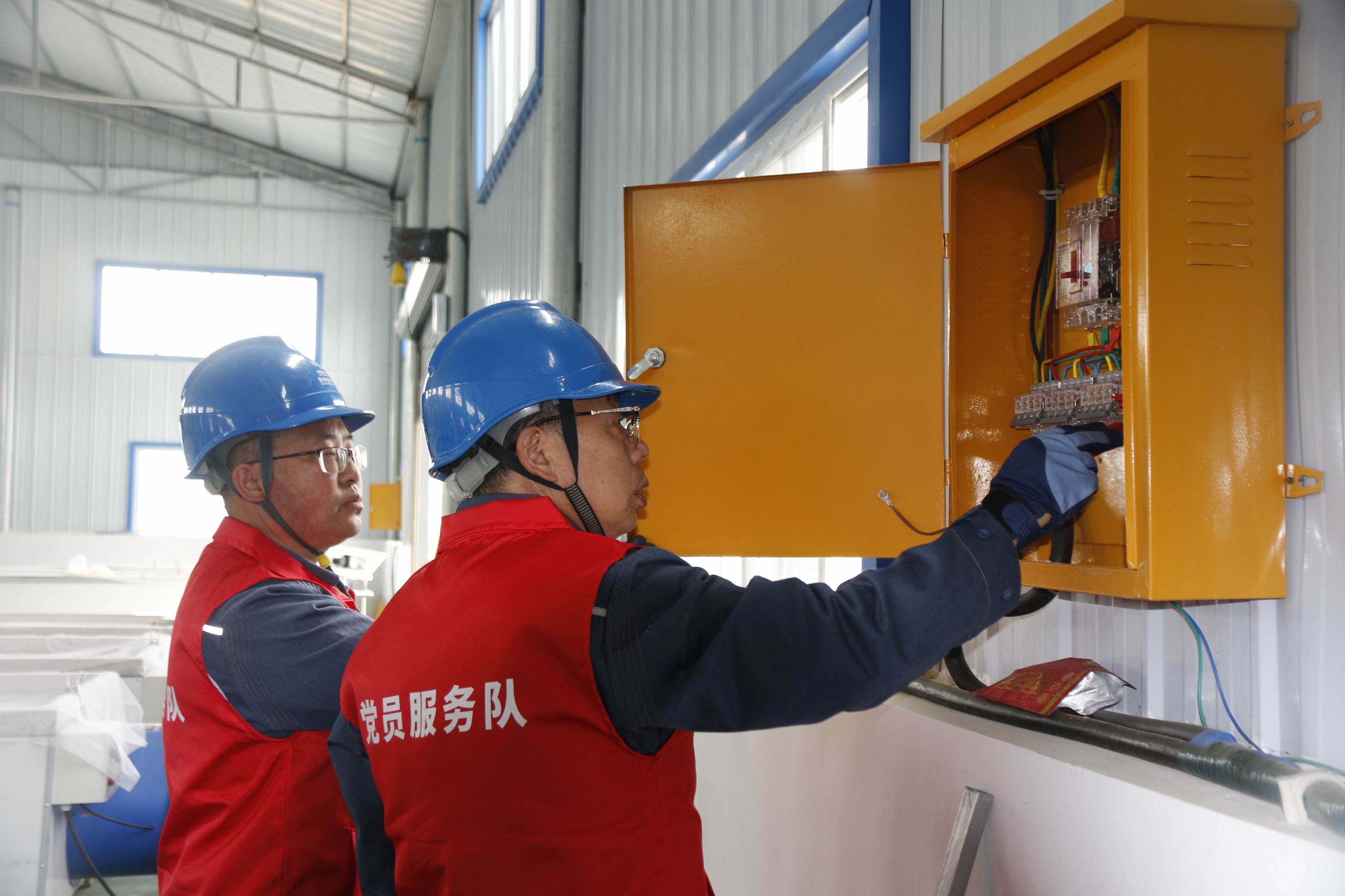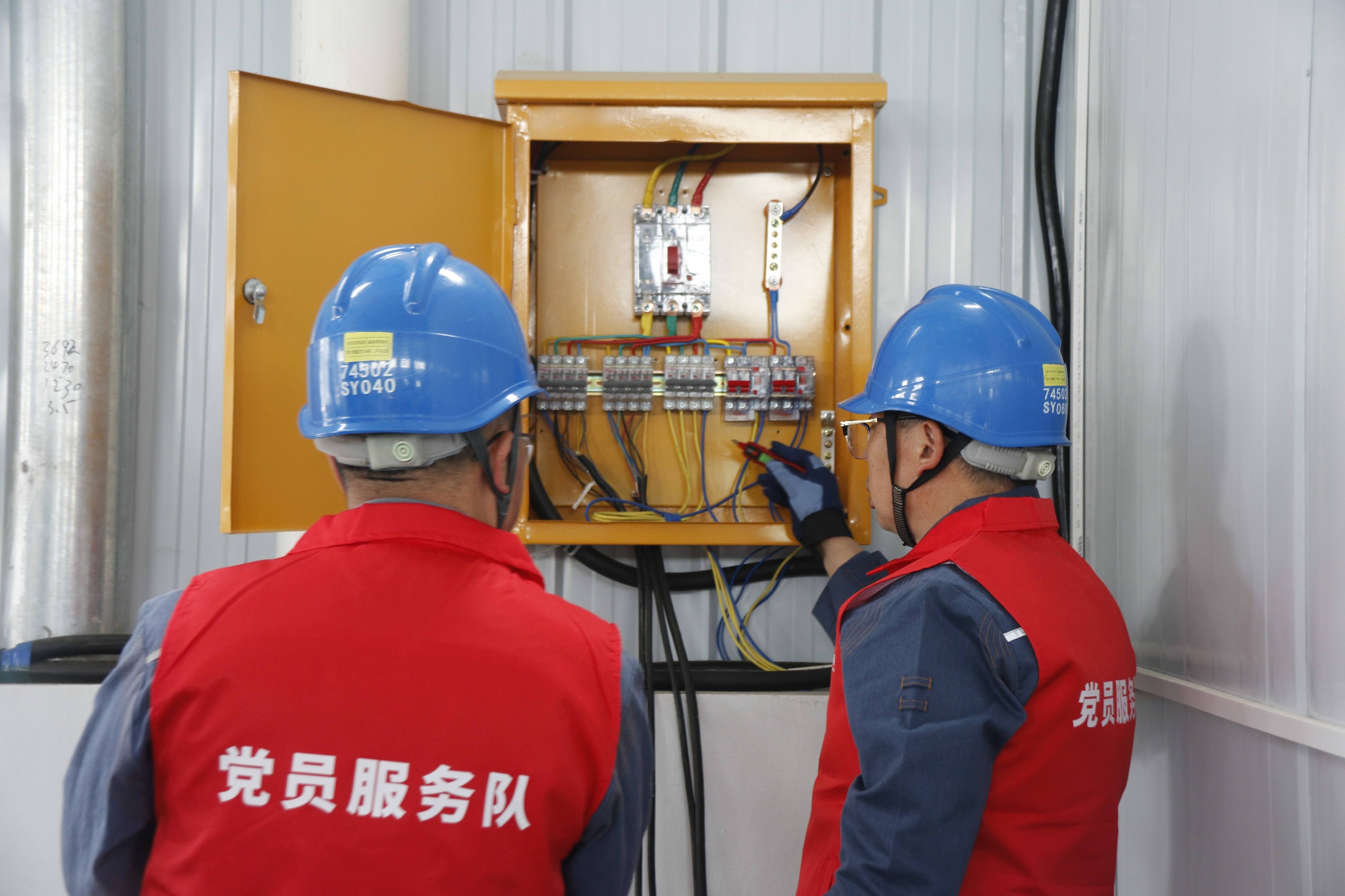 近日,记者走进蒲场镇尖峰顶茶叶有限公司制茶车间,蒲场供电所党员服务队正在对茶厂配电线路、设备以及制茶加工设备进行“体检”,排除各种用电安全隐患,现场解决茶企用电难题。