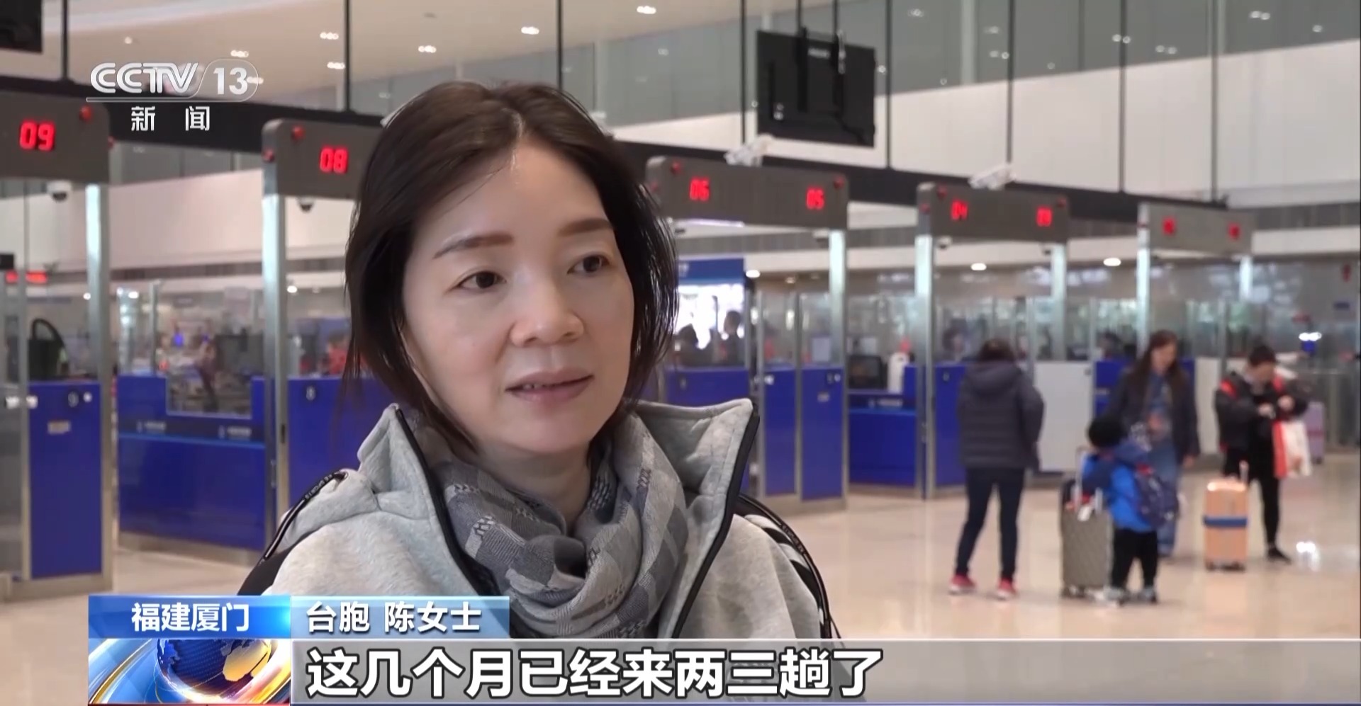 高崎边检站副站长 陈锦来:目前,厦金“小三通”客运航线每日往返24个班次,最高的一天达到7000人次,一个月内刷脸通关的台胞达到2万人次。