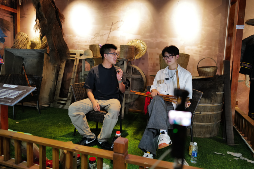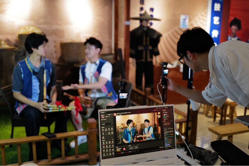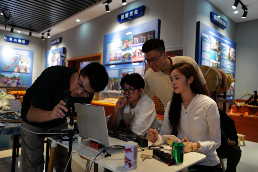22播本张炫烨担任摄影,23播本柳晴、李佳琪担任策划与主持,负责拍摄青山苗族乡宣传片。视频突出青山独特的“疗愈系”乡村风貌与沉浸式文化体验,深入探访英子小院的悠闲氛围、非物质文化遗产工坊中苗绣与芦笙的匠心传承、那渡民宿的静谧体验。此次拍摄捕捉当地自然生态、非物质文化遗产、创新融合发展的乡村文旅新图景。同学们通过实地走访体验了苗族非物质文化遗产独特的文化内涵,在实践过程中融会贯通专业技能,更为乡村振兴注入新活力。