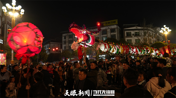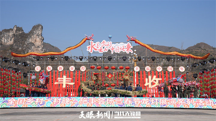 1月30日,农历正月初九,“启航新征程·幸福中国年”2023全国乡村“村晚”施秉会场暨春节龙灯展演系列活动在黔东南州施秉县水舞云台音乐喷泉广场拉开帷幕。