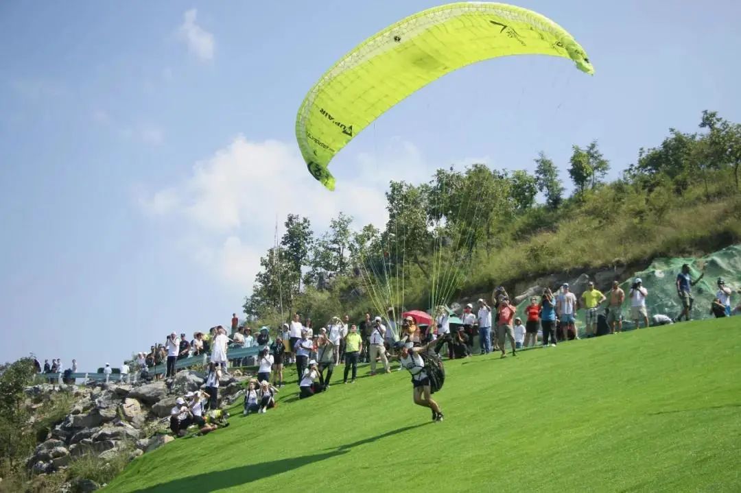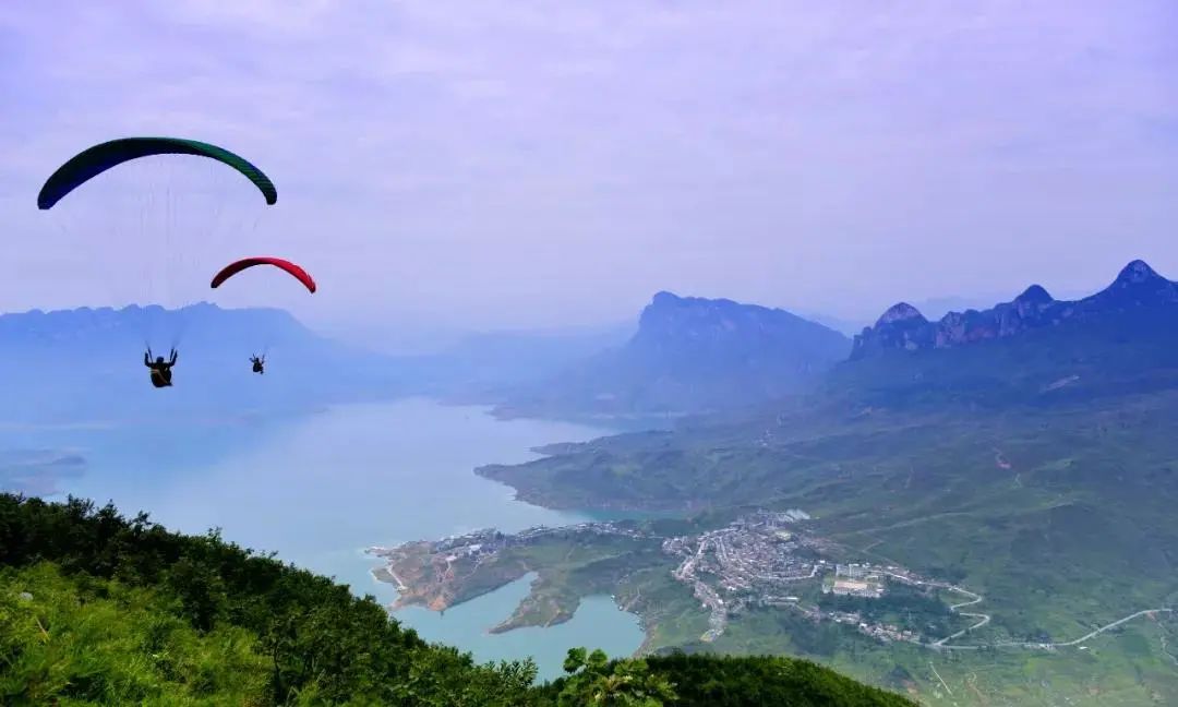 牂牁江湖滨旅游度假区独特的地形地貌为滑翔伞运动提供了得天独厚的场地。起飞场地势高,垂直落差适宜,舒缓起伏的山坡,宽阔平坦的湖面,让滑翔伞爱好者们在翱翔蓝天的同时还能一览祖国的大好河山。