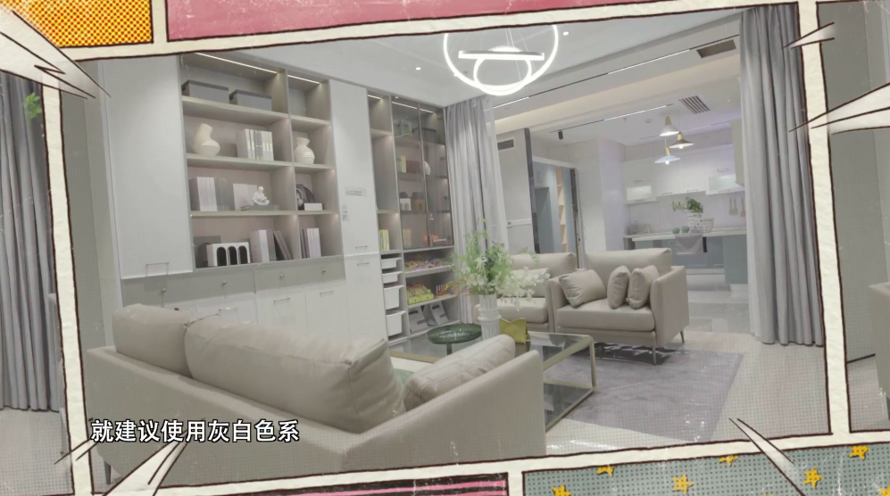 举个例子,如果家里客厅的墙面是白色的,那么地面就可以采用灰白色系,沙发就选择灰黑色系,这样看上去空间的颜色就是层层递进的。