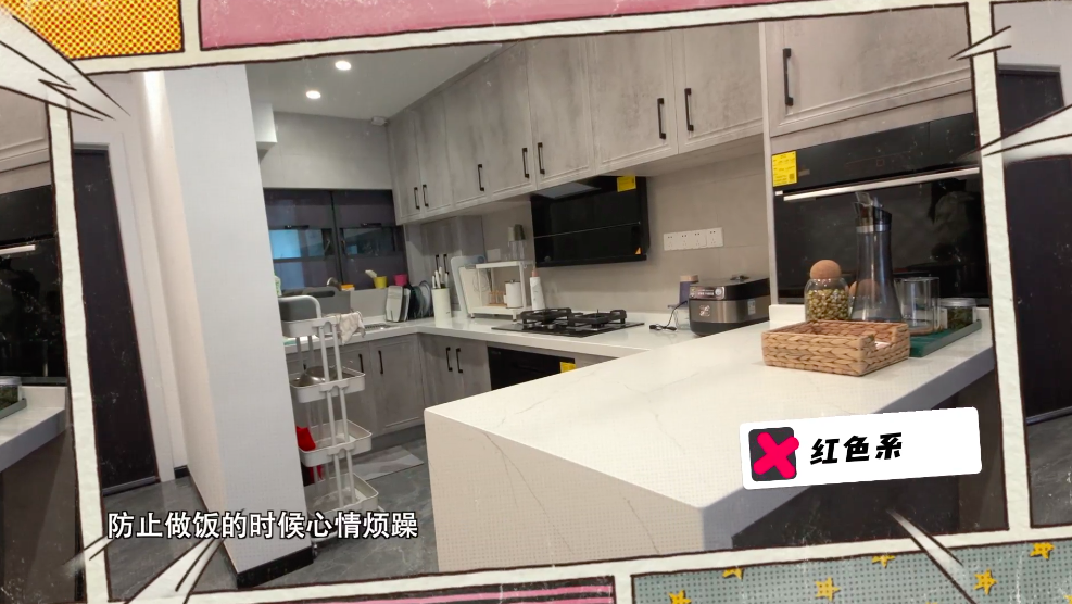 厨房要避免使用橙色系和红色系,防止做饭时心情烦躁,最好是采用浅色系。