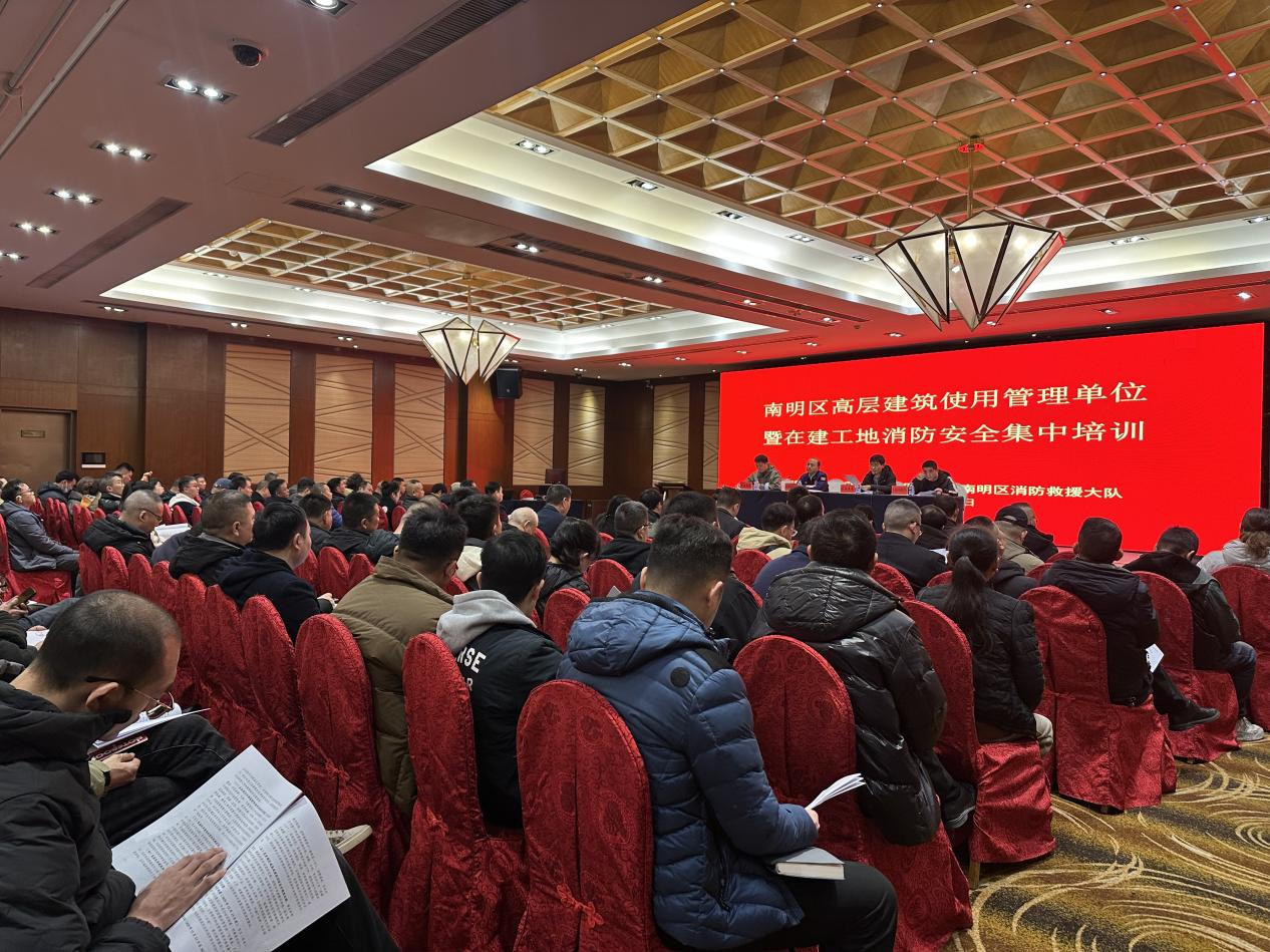 南明消防联合区住建部门召开高层建筑使用管理单位暨在建工地消防安全集中培训,辖区102家物业服务企业参训。会议通报隐患现状、部署整治工作,住建部门明确管理要求。参训人员观看火灾警示教育片,授课人员结合理论与案例讲解,助力提升消防安全管理及防范实操能力。