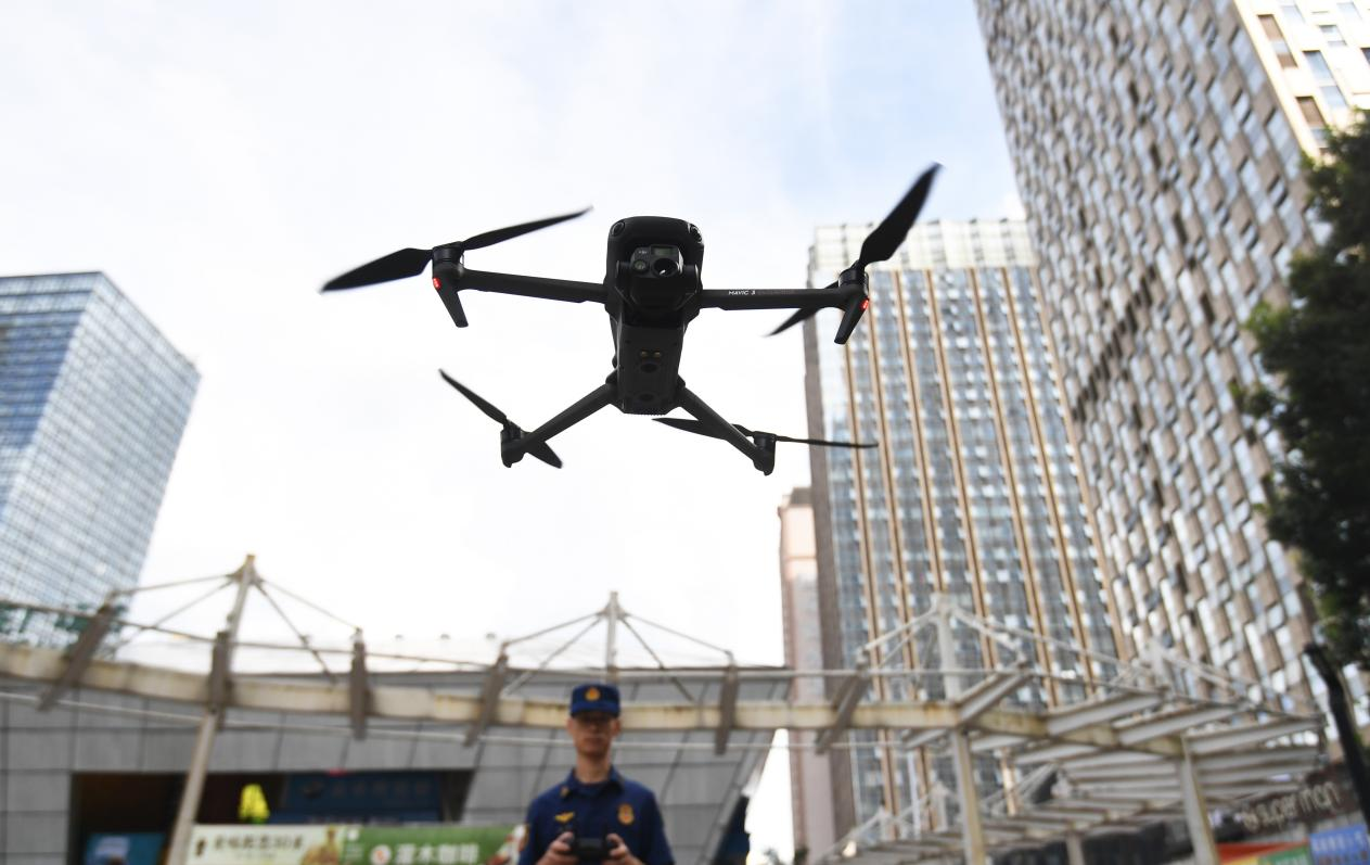 南明大队以“阵地宣讲+载体创新”模式,打造立体化宣传矩阵。利用无人机在花果园高层建筑、住宅小区等重点区域开展高空喊话防火宣传,将消防安全知识“飞”入千家万户。