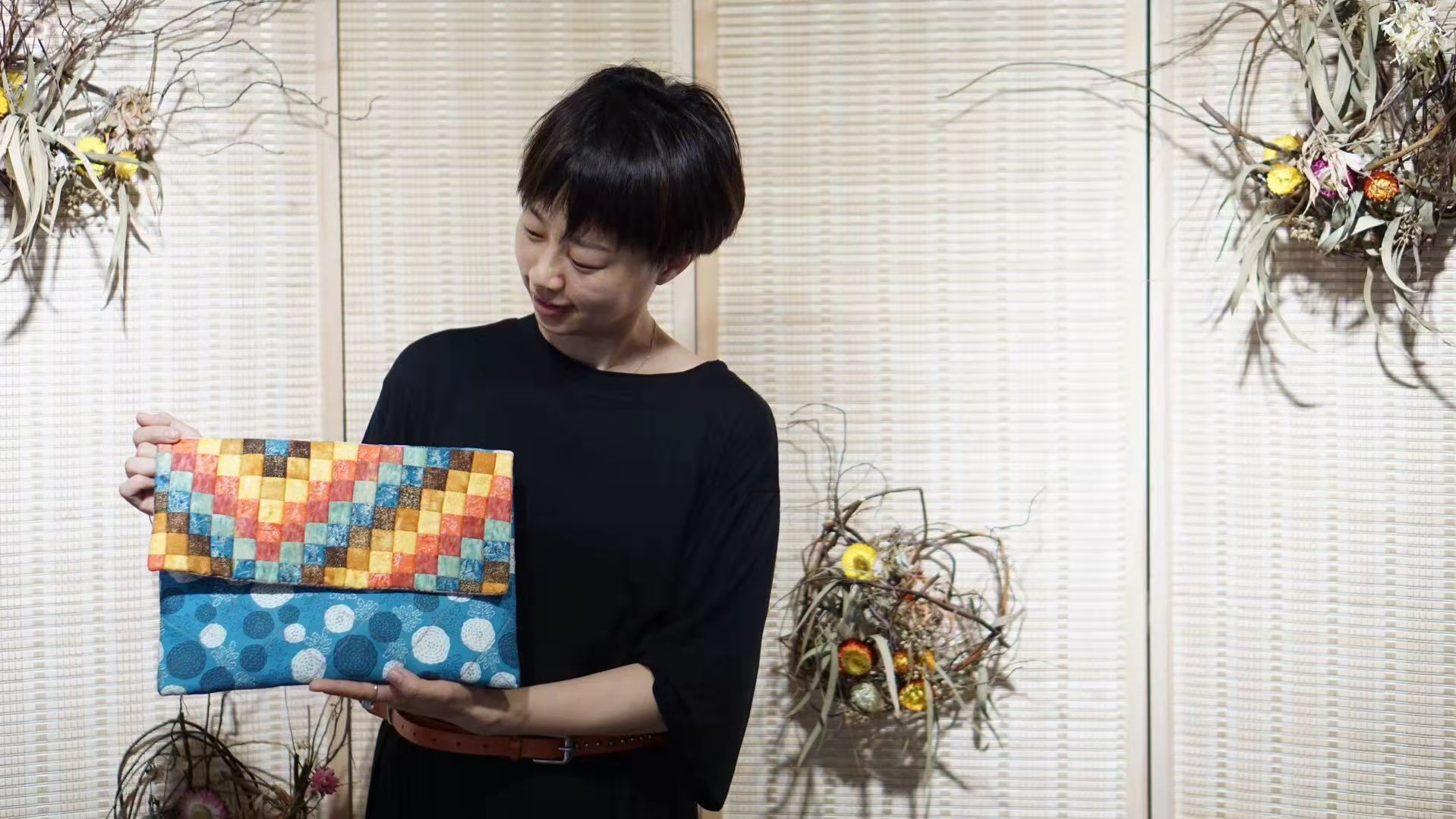 拼布这个爱好是在陈丽媛儿子2岁左右,机缘巧合下买了一台缝纫机开始的。那时候陈丽媛想给孩子做一身贴身的内衣,但是孩子长得太快,她的手工速度跟不上,等她做出来,他已经长大了。后来就开始对各种拼布小包感兴趣,慢慢地发现拼布也是非常疗愈的,把一块一块大的布裁小,再通过拼接,最后呈现出另一个作品时,有一种成就感。在制作的过程中,陈丽媛是非常专注的,一针一线间,时间就过去了。陈丽媛觉得那个时候整个人是被放空的,所以很享受这样的时光。