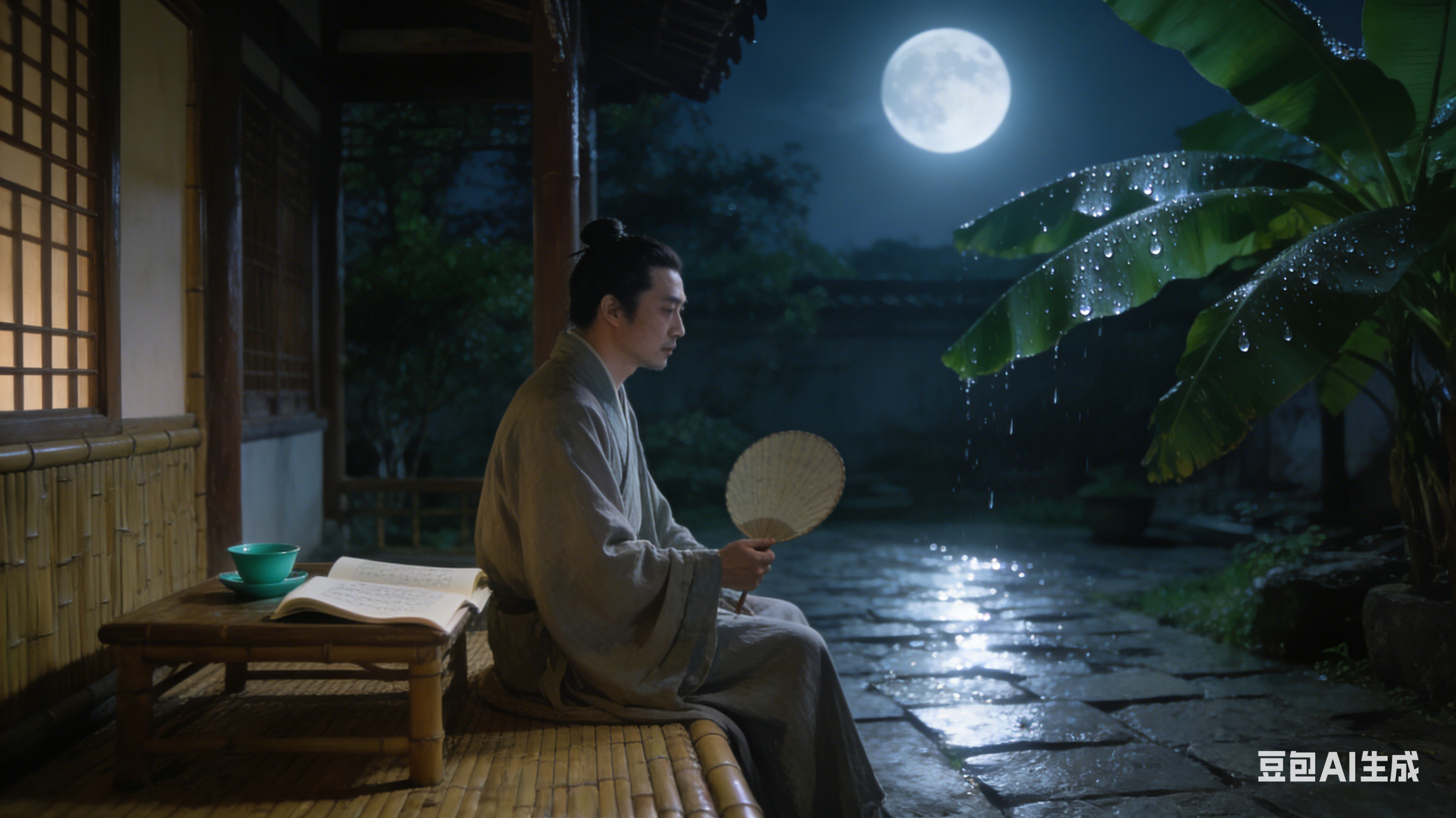 这是第一首明确以“独坐”为题目的诗歌。夏夜独坐,萧子范“凭轩伫凉气”,在“徂炎”的“三伏”,感受到了“虫音”、“萤光”、“帘月”、“风光”。这并非真正与世隔绝的荒野孤独,而是贵族文人于庭院中刻意寻求的一份清静。其笔下的景物,如“乱阶草”、“绕庭木”,动静相宜,构成一幅工笔小品般的夏夜消暑图。然而,这份闲适的底层,最终流向了对时间无可挽留的叹息:“一伤年志罢,长嗟逝波速”。这里的“独坐”,是于安逸生活中生发的、带有普遍哲学意味的生命沉思,这样的孤独是清浅而优美的,是贵族文化生活的一种雅致点缀。