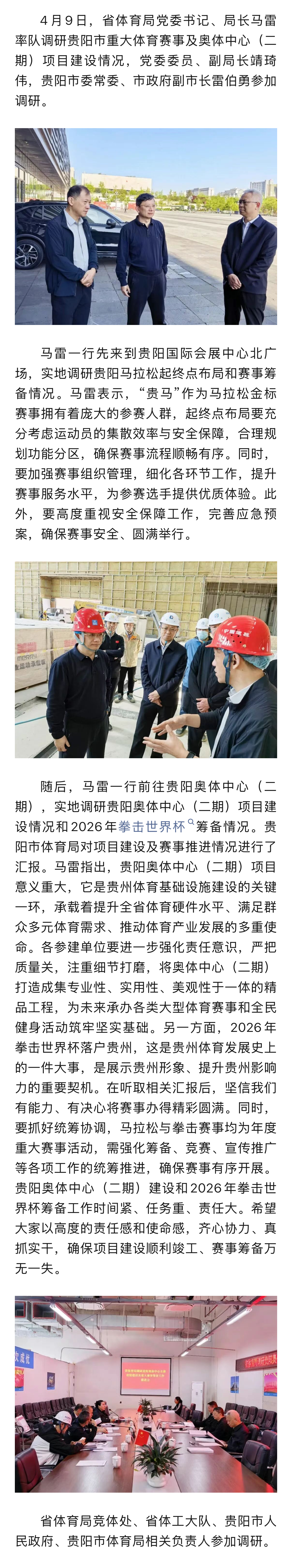 马雷调研贵阳市重大体育赛事及奥体中心(二期)项目建设情况