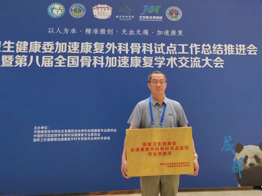 2023年6月9至11日,国家卫生健康委加速康复外科骨科试点工作总结推进会暨第八届全国骨科加速康复学术交流大会在成都召开。在本次会议上,国家卫生健康委等有关机构对我院在整体推进加速康复外科骨科试点工作中做出的积极贡献授予“突出贡献奖”。贵阳市第四人民医院党委委员、副院长龙胜利受邀带队参加,并接受颁奖。