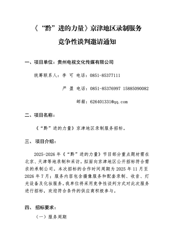 《“黔”进的力量》京津地区录制服务竞争性谈判邀请通知