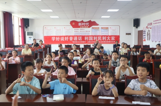 “请你来扮演一下猴王可以吗?”在甘河街道办事处的活动室里,志愿者手持彩色卡片引导着分成三支队伍的孩子们参与游戏。7月13日下午,“语润童心·言筑未来”主题教学在此拉开帷幕,50余名易地搬迁安置点青少年成为首批学员。 延续“基础筑基+趣味实践”的教学模式,志愿者们从破冰环节便融入普通话训练:“绕口令”游戏要求用标准发音衔接,“击鼓传花”让孩子们用普通话演绎趣味小故事,在笑声的柔光里,胆怯悄悄融化。针对乡村青少年常见的“平翘舌不分”“前后鼻音混淆”等问题,志愿者带领大家做“舌尖抵齿”“鼻音共鸣”等进阶口部操,配合《白石塔》绕口令强化训练。“以前孩子说‘老师’总念成‘老丝’,跟着练了半小时,居然能分清‘s’和‘sh’了!”旁观的家长王女士难掩惊喜。 课堂尾声的“故事拼图”环节更显巧思:志愿者将《猴吃西瓜》故事按角色分段,孩子们需用普通话讲述自己所扮演角色的故事并拼接完整。