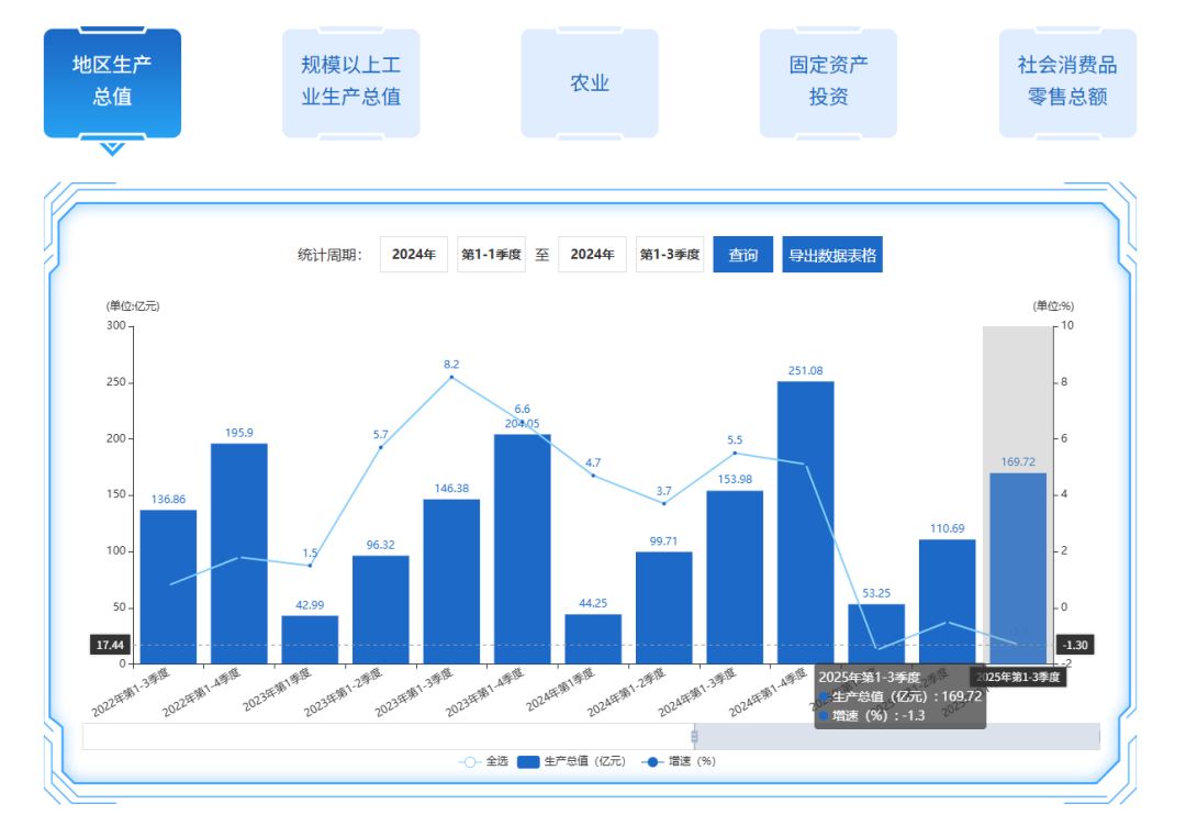 记者从乌当区人民政府网了解到,前三季度,乌当区生产总值169.72亿元,同比下降1.3%。