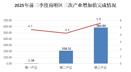 根据区(市、县)生产总值统一核算结果,2025年前三季度,南明区生产总值794.56亿元,按不变价格计算,同比增长5.3%。