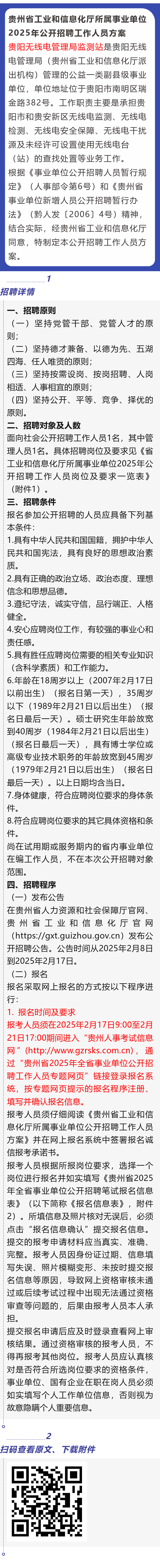 贵州省工业和信息化厅所属事业单位招聘!报名截止时间:2月21日!