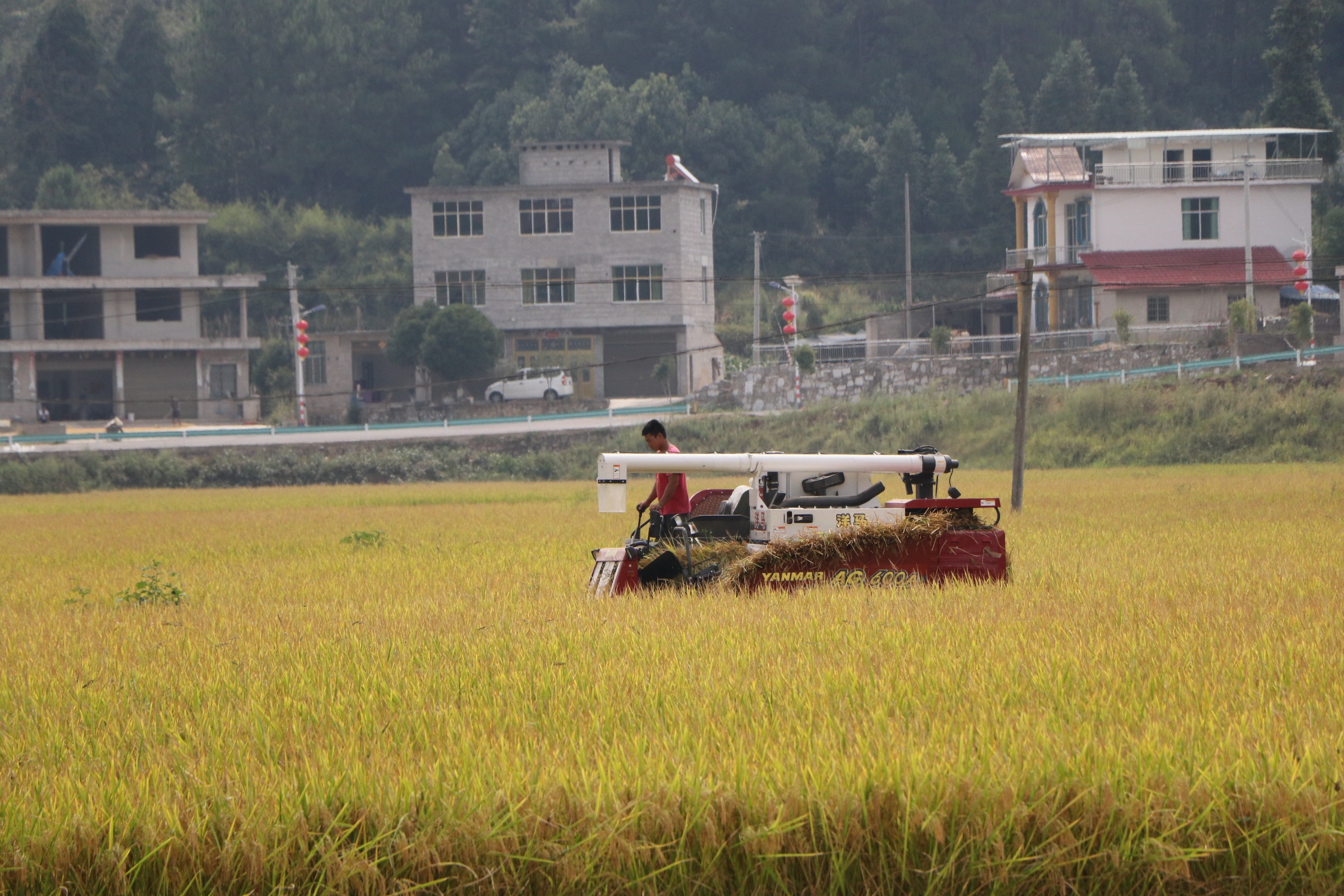 ▲今年,我省首次在玉屏、长顺、惠水、思南等地实施水稻全程机械化生产托管试点,试点面积3万亩。目前已完成12场测产,平均亩产647.45公斤,比同区域人工耕种产量增加100公斤以上,还创下了最高单产775.36公斤的好成绩。