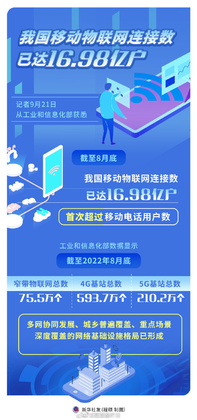 ▲工信部统计,截至8月底,我国移动物联网连接数已达16.98亿户,首次超过移动电话用户数。