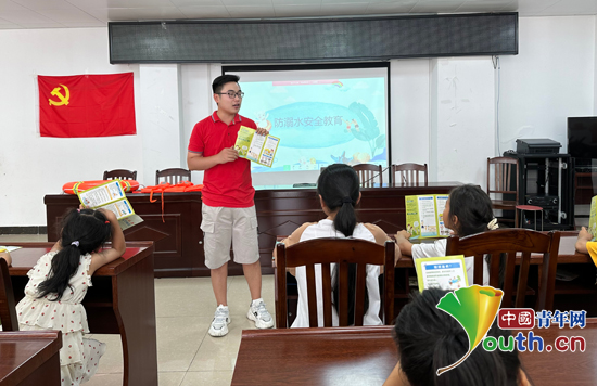 图为志愿者赵宇为孩子们讲解防溺水安全知识。郑州大学研支团供图