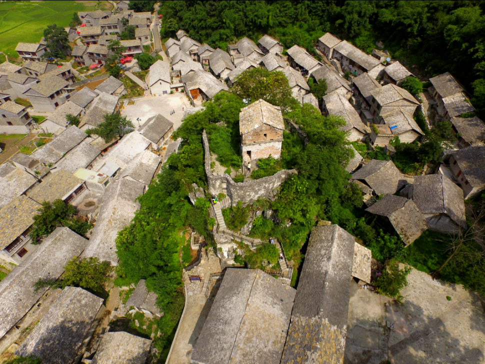 在创作时,林飞特意选取了俯视的视角进行构图,使观者能够更全面地感受屯堡建筑群的整体格局与雄伟气象。