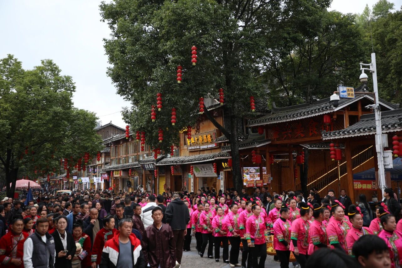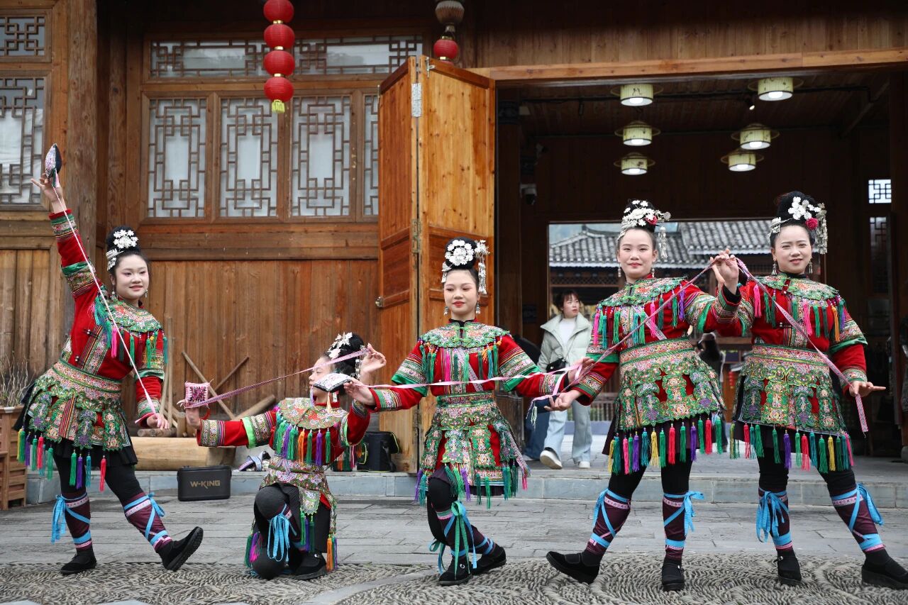 活动当天,肇兴侗寨好戏连台、精彩纷呈。寨门迎宾轮番上演,侗家儿女身着盛装唱拦路歌、敬拦路酒,将最真挚的待客诚意尽数展现。