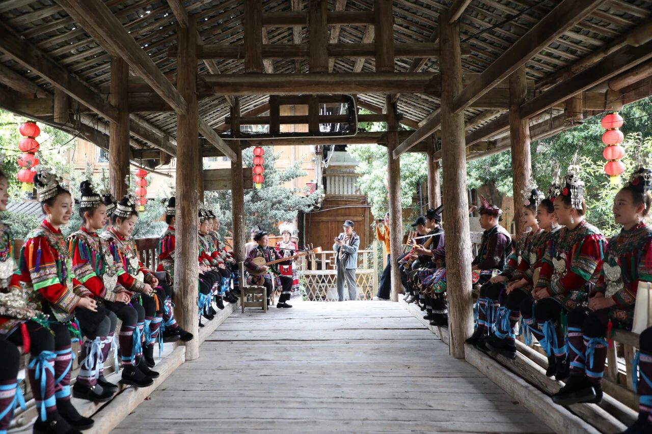 梦猫花桥上,非遗侗族大歌对歌展演温情开唱,青蛙歌、琵琶歌婉转悠扬,唱响侗乡独特韵律。