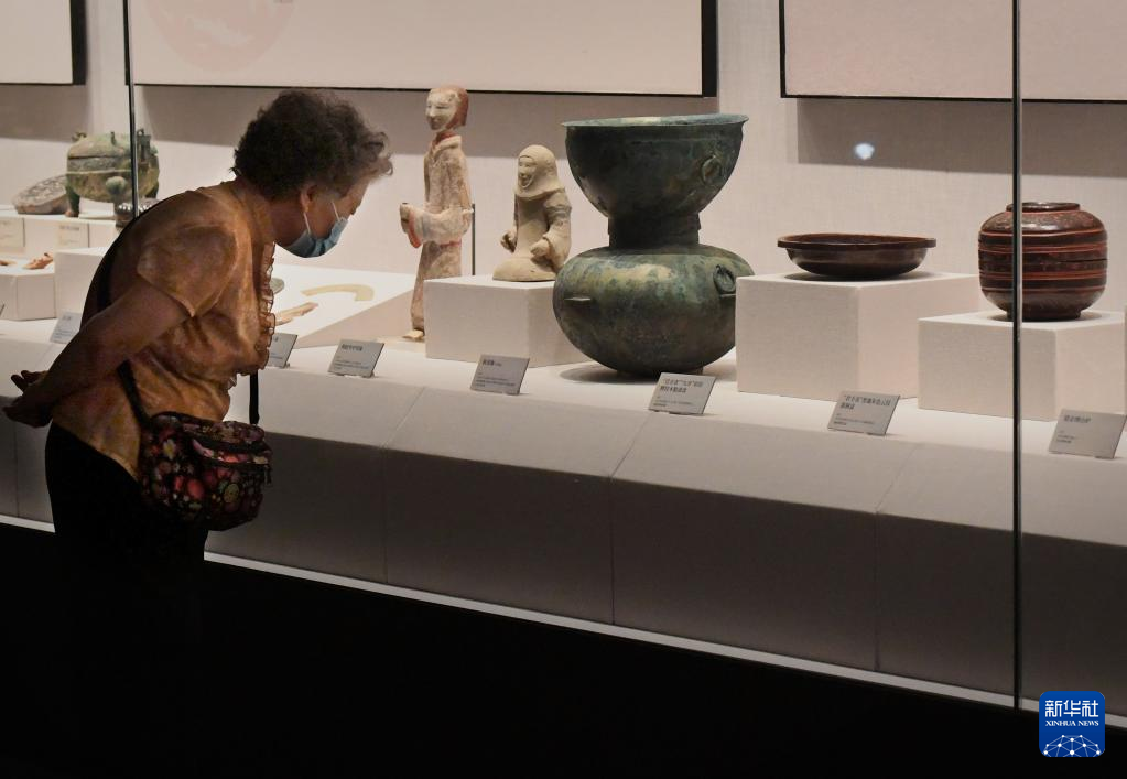 9月4日,参观者在“繁星盈天——中国百年百大考古发现展”上观看展品。新华社记者 李安 摄