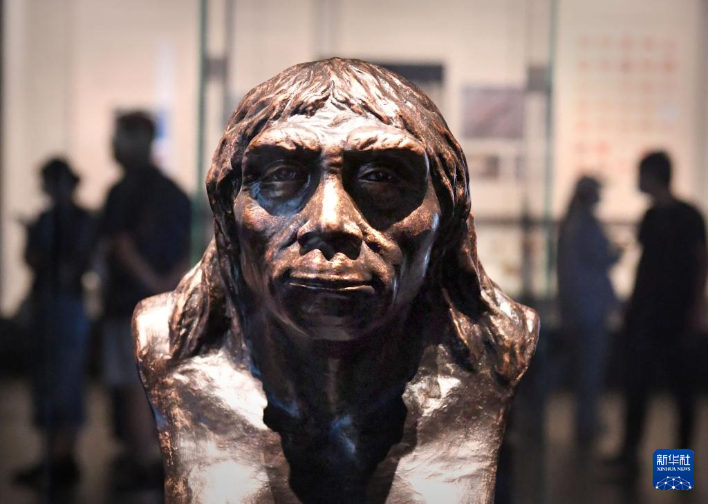 这是9月4日在“繁星盈天——中国百年百大考古发现展”上拍摄的“北京猿人半身复原像”。新华社记者 李安 摄