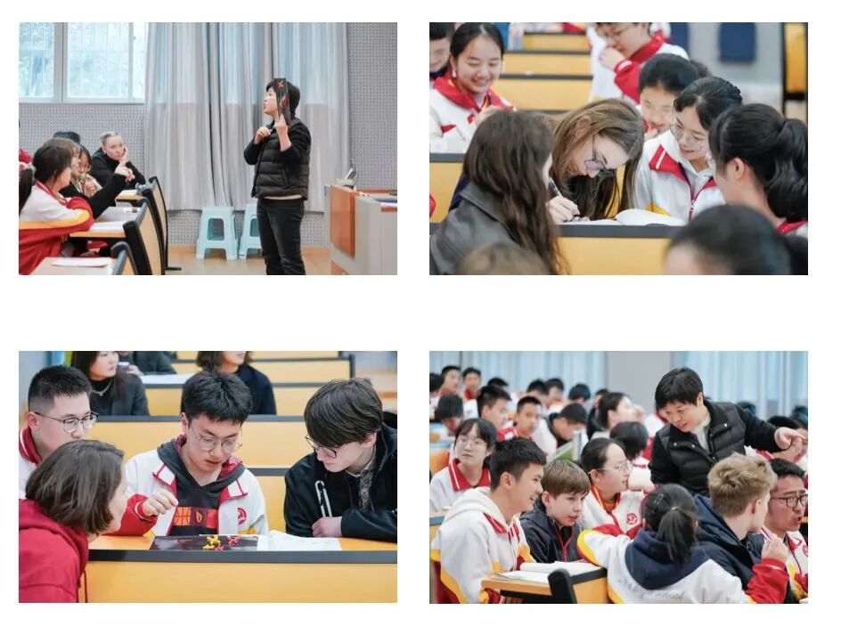 课堂间隙,德国学生也分享了自己的学校生活、课程设置和课外活动,中德学子围绕学习方式、兴趣爱好、文化习俗等话题热烈交流,陌生感在欢声笑语中悄然消散,友谊的种子在彼此心中生根发芽。