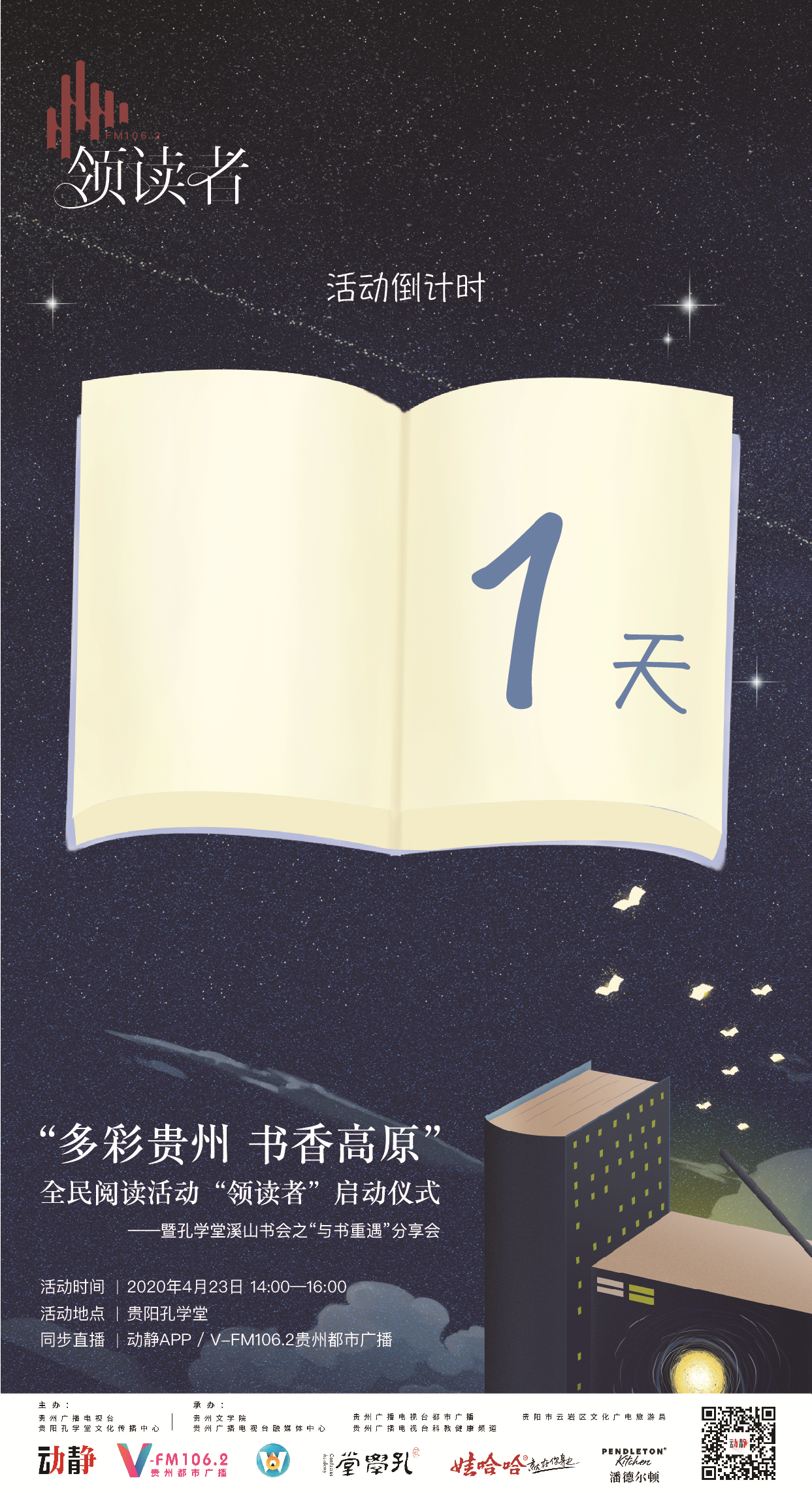 由贵州广播电视台、贵阳孔学堂文化传播中心主办,贵州文学院、贵州广播电视台融媒体中心、贵州广播电视台都市广播、贵州广播电视台科教健康频道、贵阳市云岩区文化广电旅游局承办的“多彩贵州 书香高原”全民阅读活动“领读者”将于4月23日世界读书日正式启动。