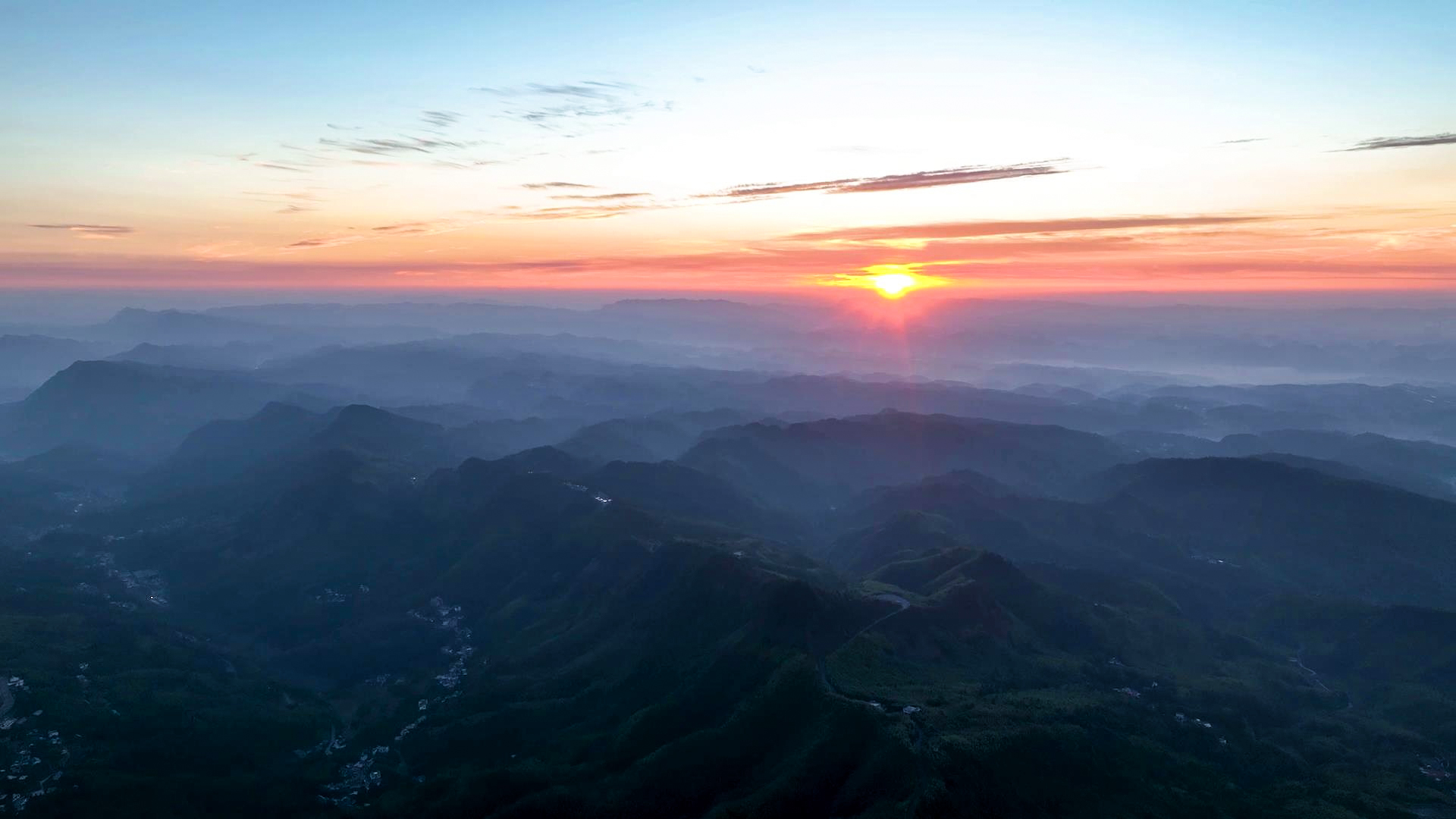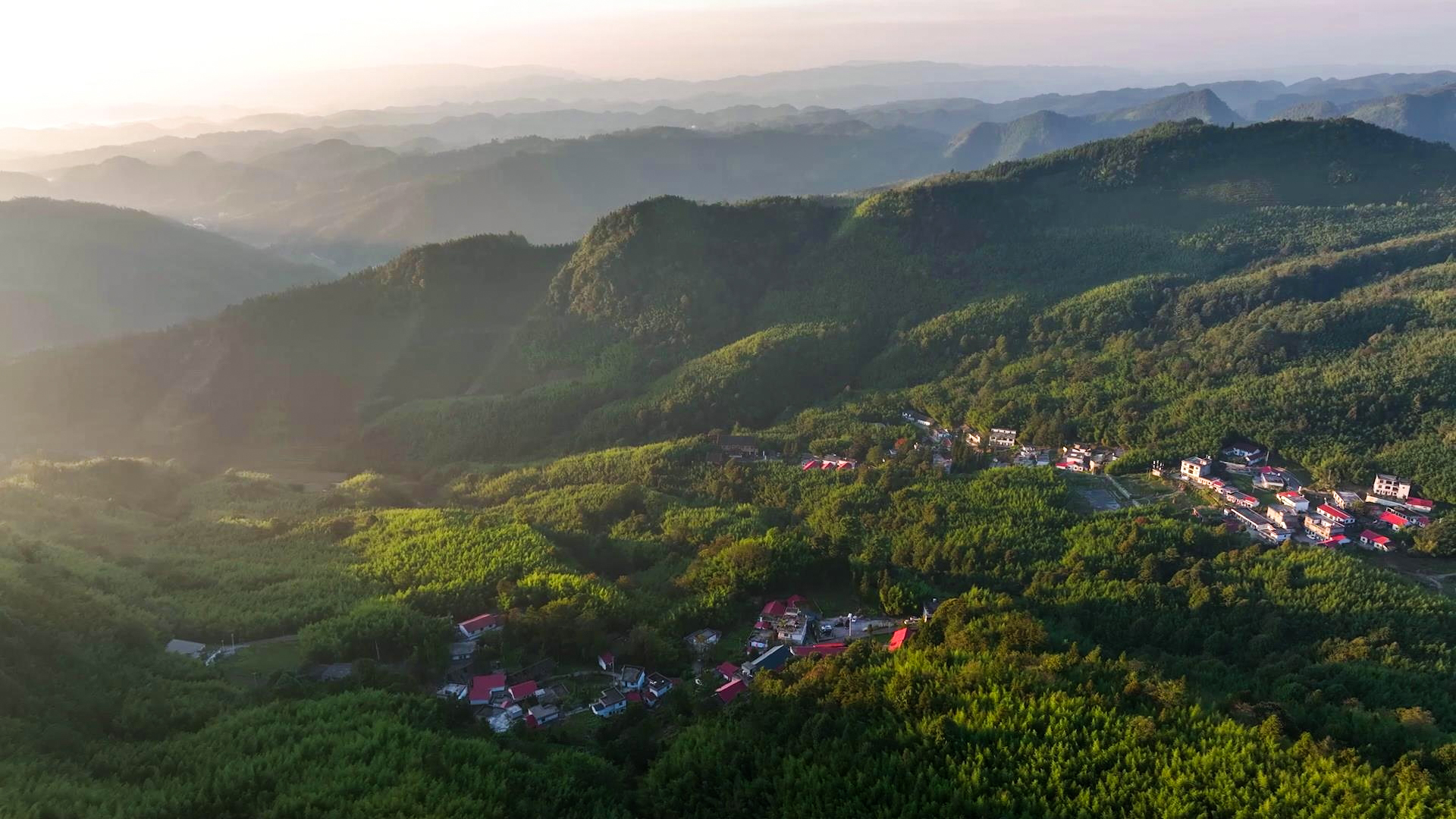 清晨6时20分左右,山峦层叠的万亩竹海东方,天边渐红。最红最亮之处,一轮红日缓缓升起,放出光芒万丈,逐一将山头照亮,错落在竹林深处的人家,房屋也慢慢有了光亮。薄雾萦绕在山间,给竹海盖上了一层轻纱,烟笼青翠,雾锁深林,清幽淡远,就如世外仙境一般。