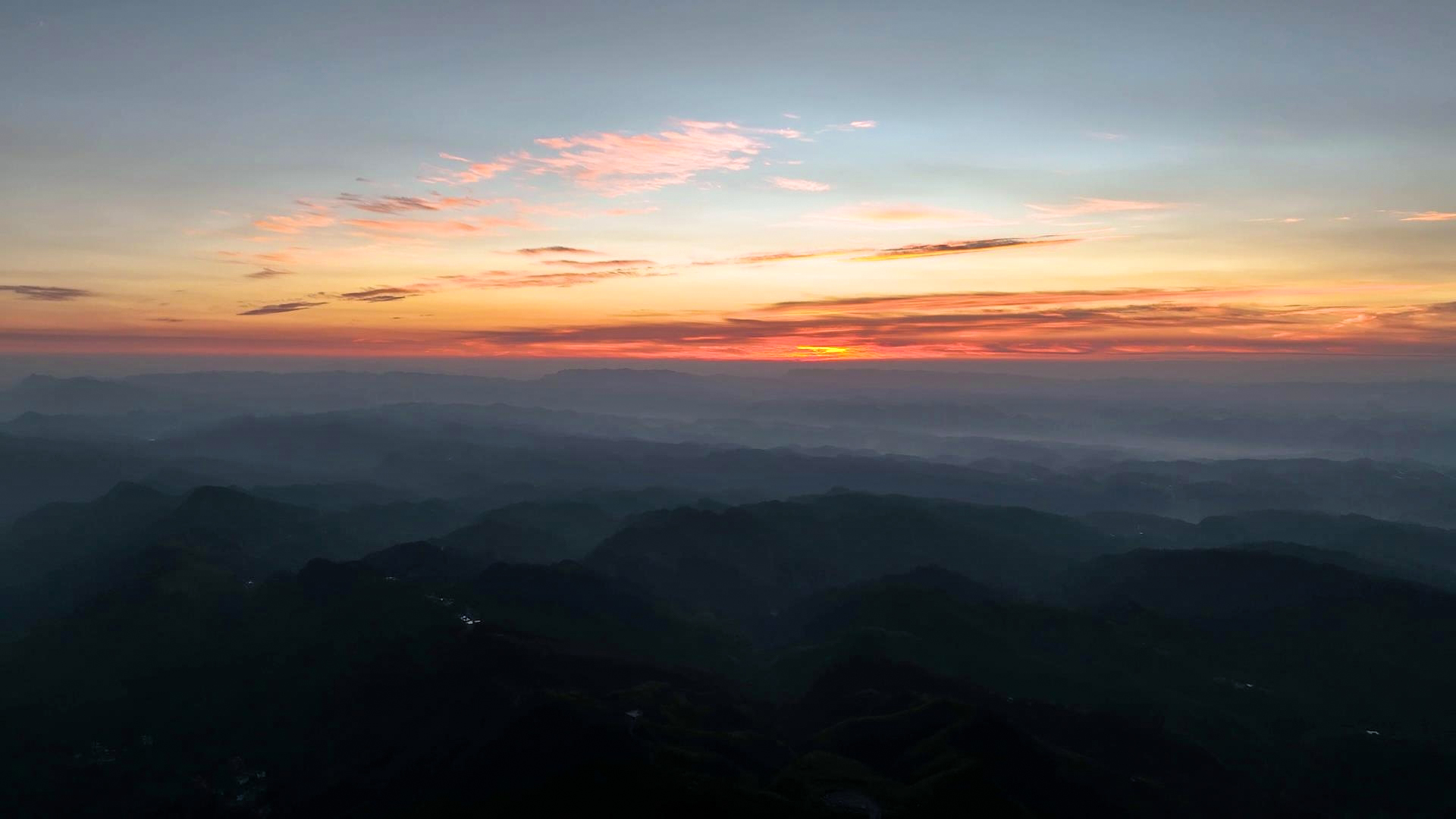 10月19日,在盘州市大洞竹海景区,朝霞似火,薄雾如纱,将万亩竹海映衬得如画一般,十分美丽。