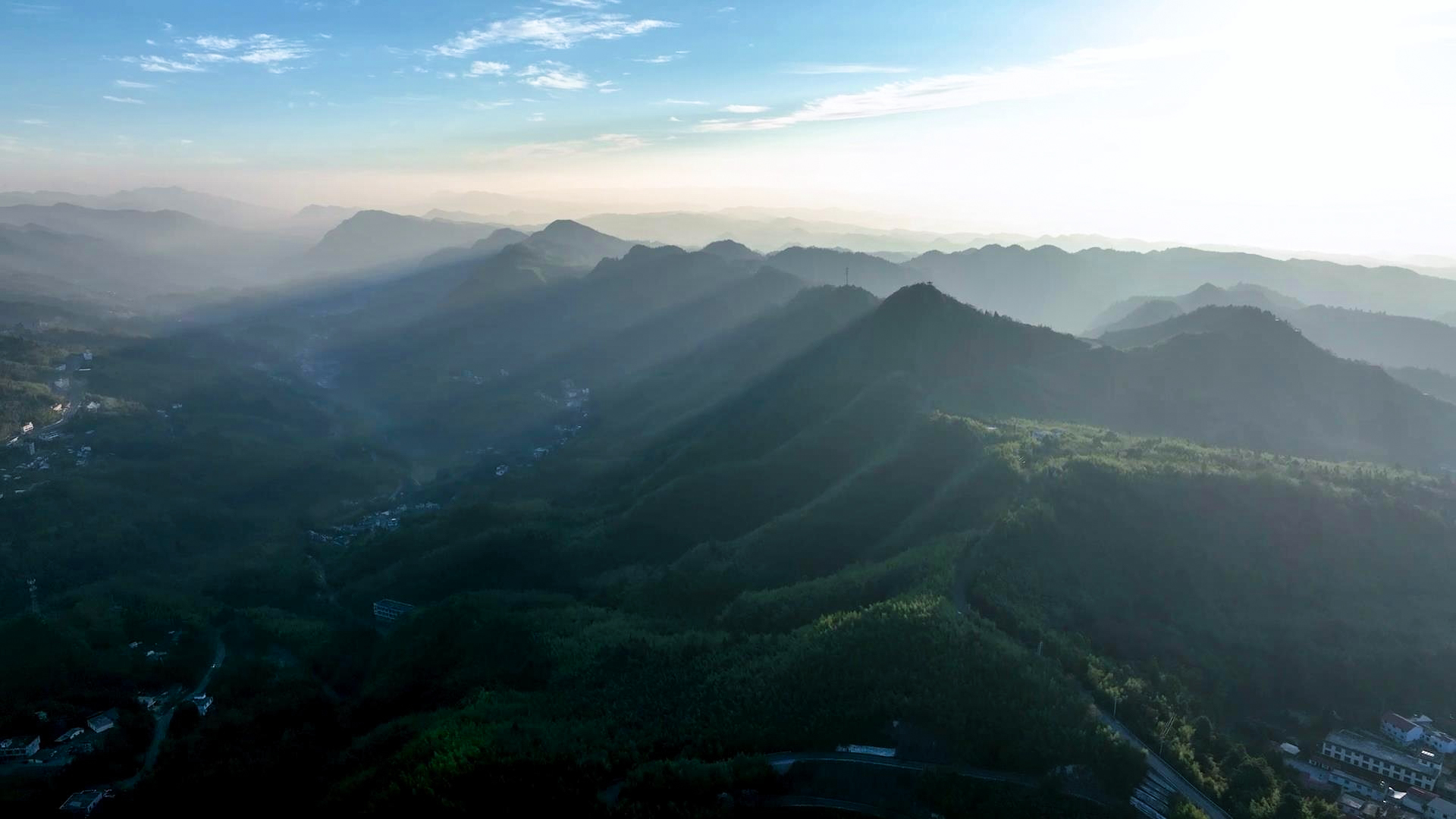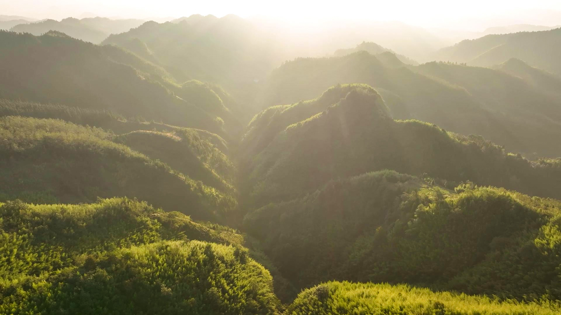 阳光不断升高,被山头切割阻挡,在薄雾的作用下,便形成了奇妙的“丁达尔”现象,让光有了形状。