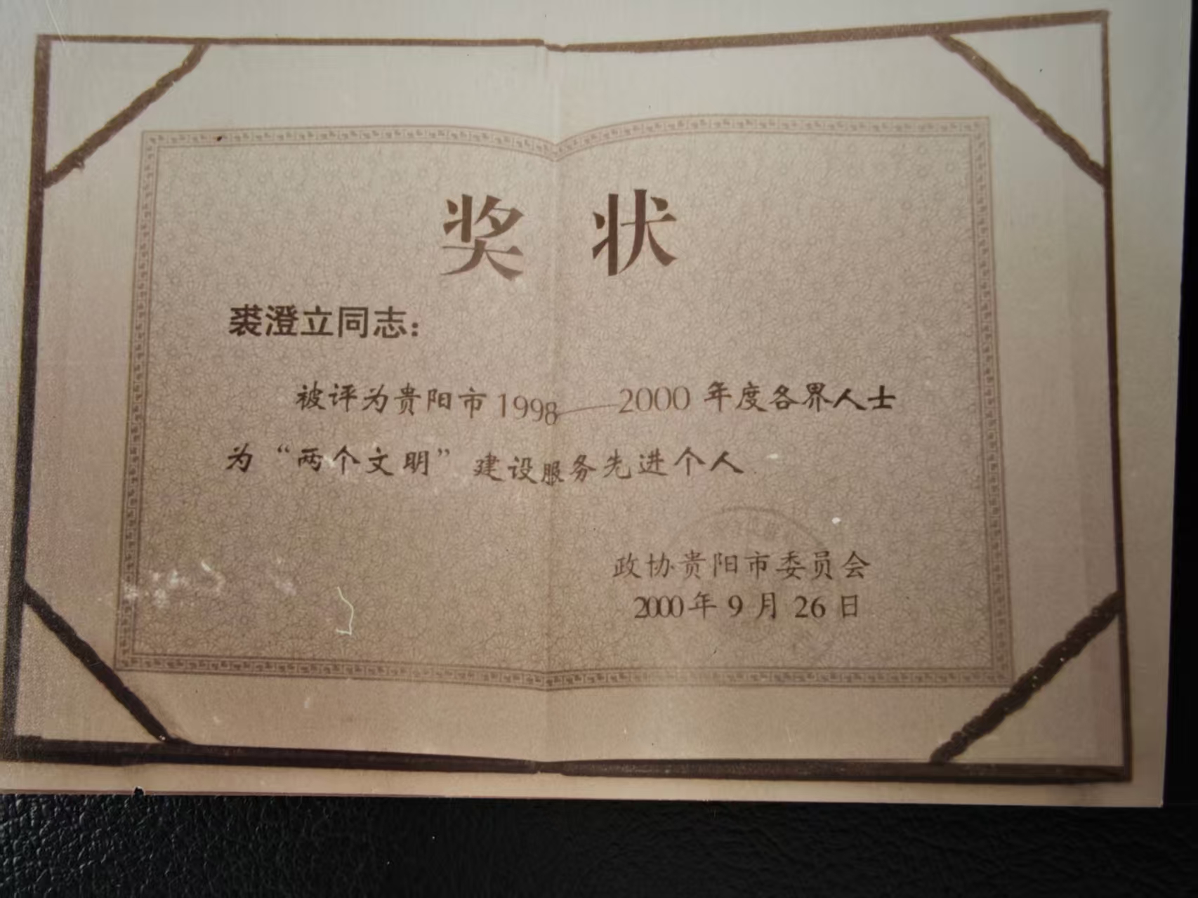 抗战胜利后,外公在贵州安顺创办黔丰面粉厂、平坝发电厂,改善当地粮食加工与电力供应。新中国成立后,他无私地将这些工厂捐给国家,并在贵州省粮食厅参加革命工作,指导全省粮食工业建设。外公又因汽车维修技术精湛,被调到全省轿车最集中的贵州省政府小汽车修配厂,65岁时随着贵州机关事务管理局撤销才光荣退休的。退休后外公受聘于贵州省轻工厅基建队,以诚信、高效、优质赢得社会广泛赞誉,积极为国家建设做贡献。他繁忙的工作之余还时常参加贵州省老科协活动,常年订阅《知识就是力量》《大众科学》《贵阳晚报》等报刊杂志,坚持收看收听新闻和戏曲,终身学习不辍,也培养了我读书看报和关心国家大事、喜爱文史的习惯。