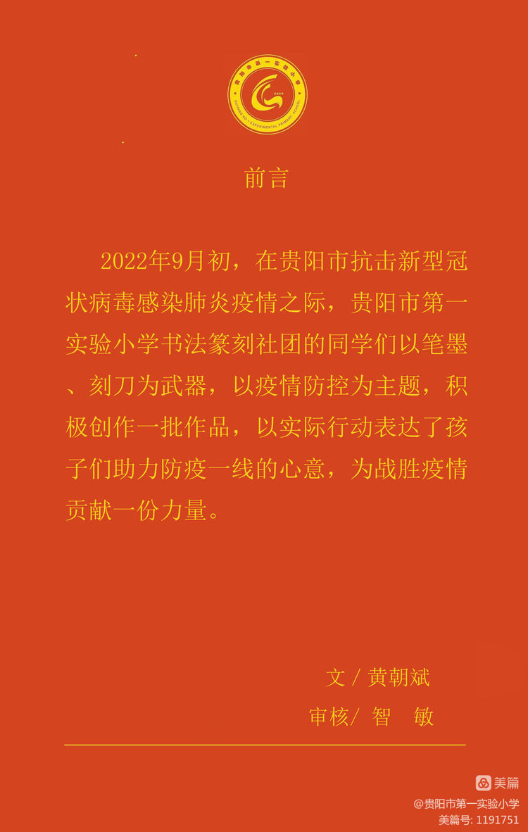 共克时艰·同心战“疫”—— 贵阳市第一实验小学鹜行社篆刻社团学员以“抗疫有我·贵阳加油”为主题创作网络展