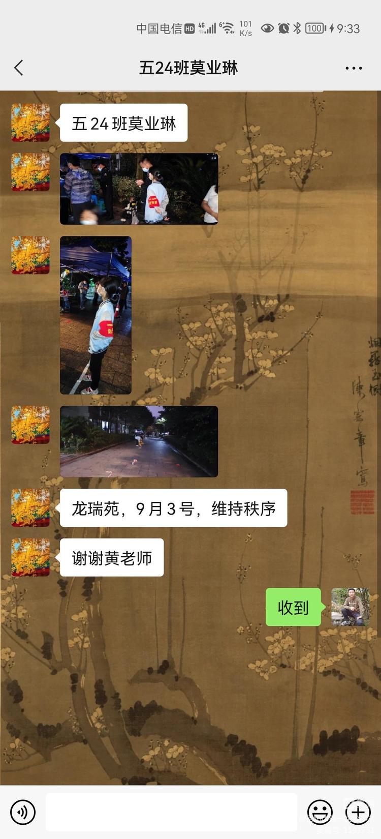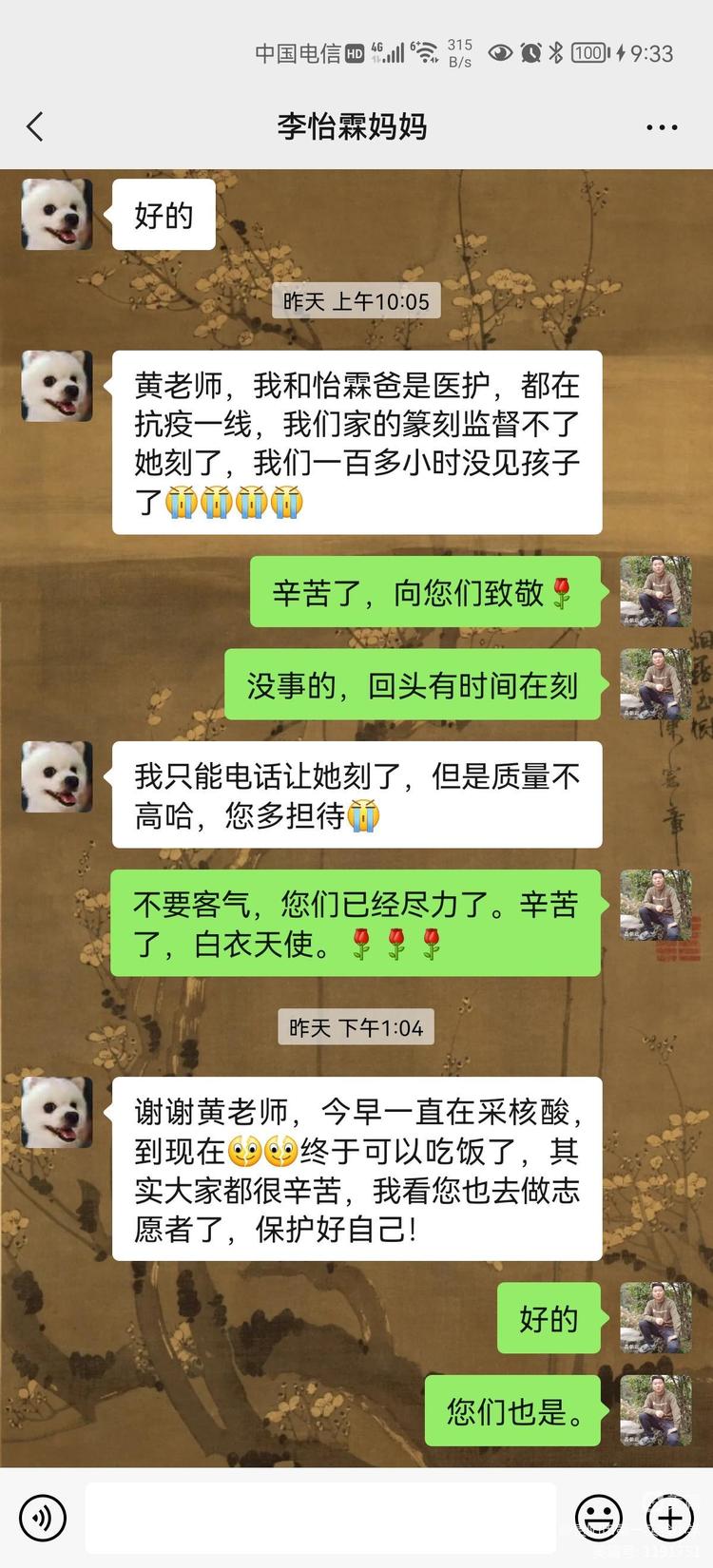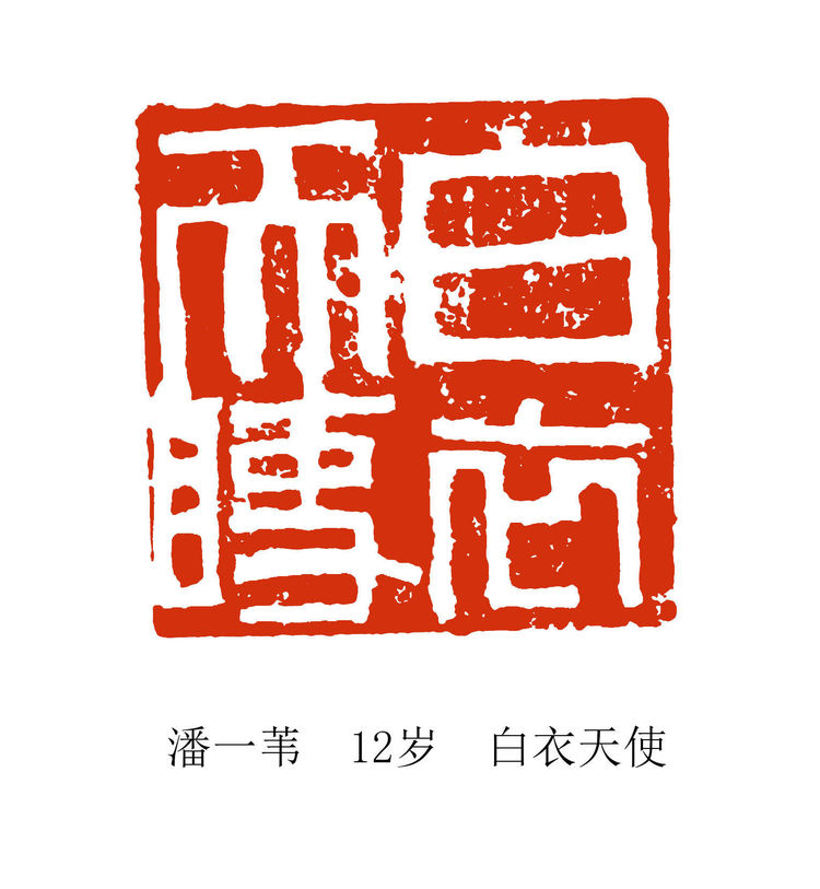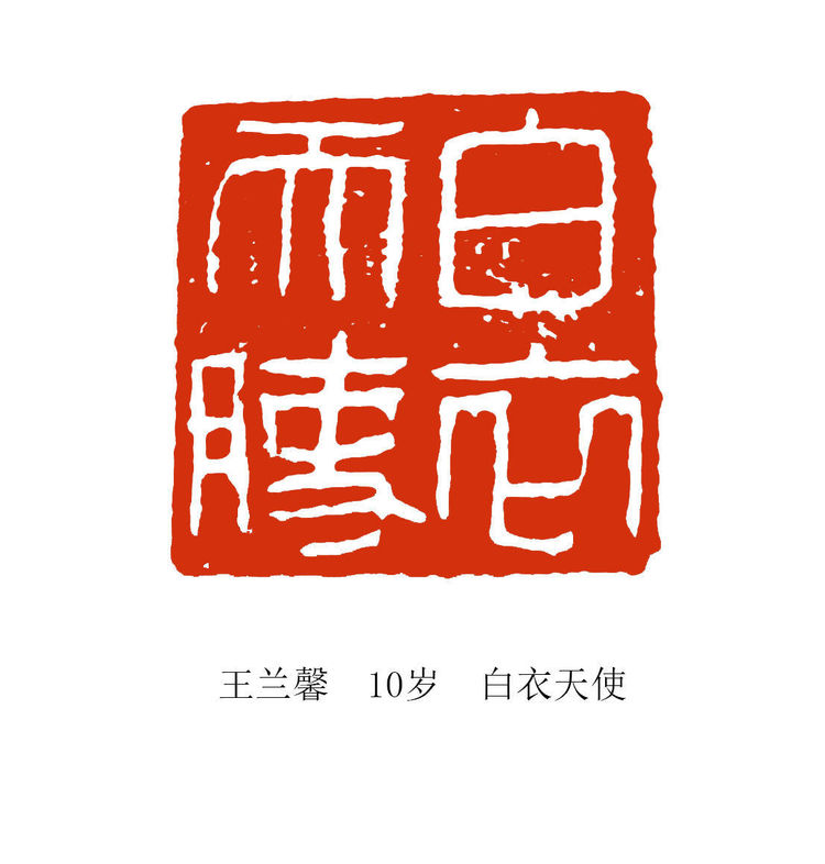 (金艺潼同学把“白衣天使”印章刻完后印在护士的身上,以助力防疫一线工作者)
