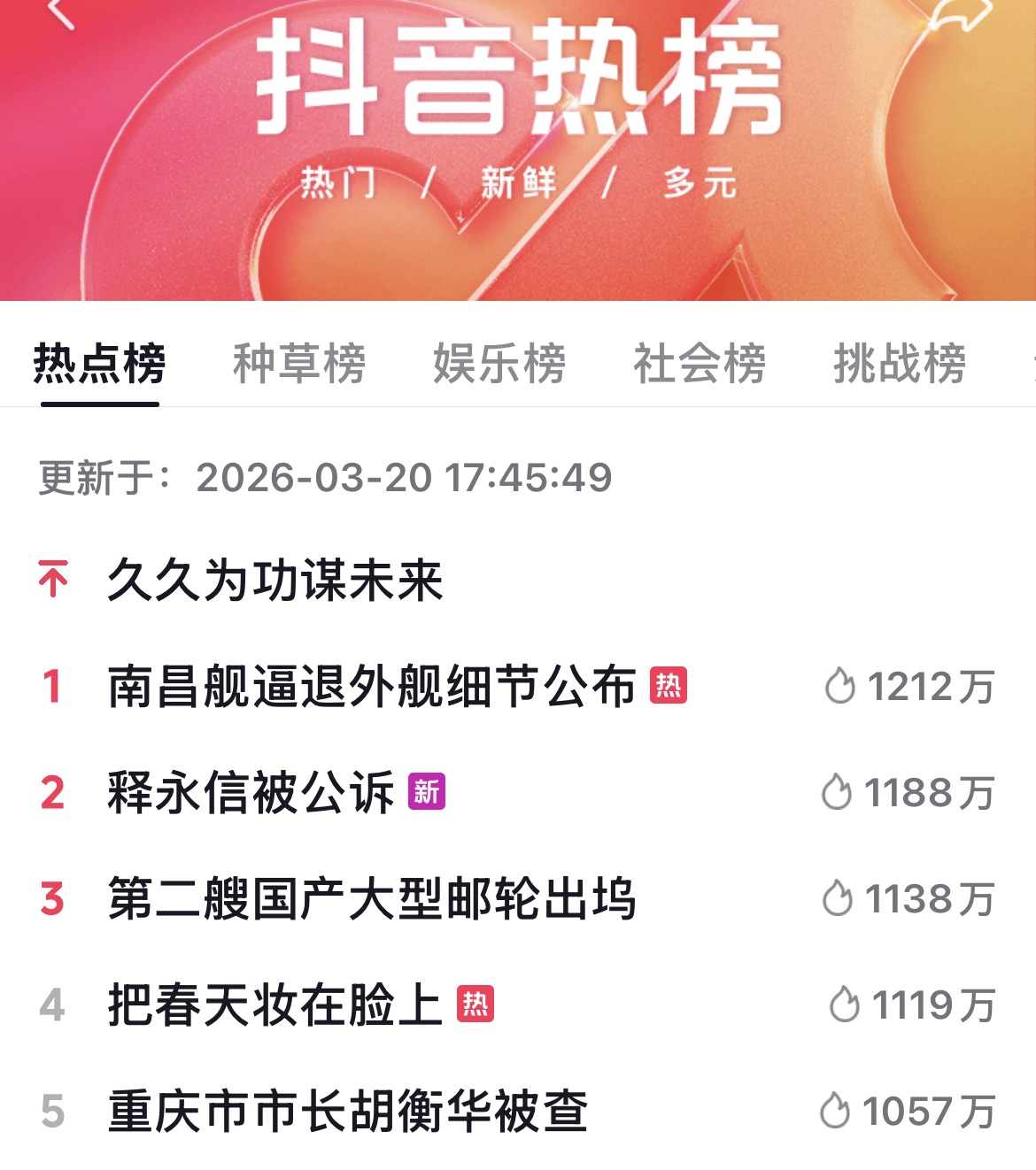 打开动静新闻客户端,刷动静听新闻。社交媒体热点打捞,洞悉社会情绪,最后来看各大热榜,明天见!