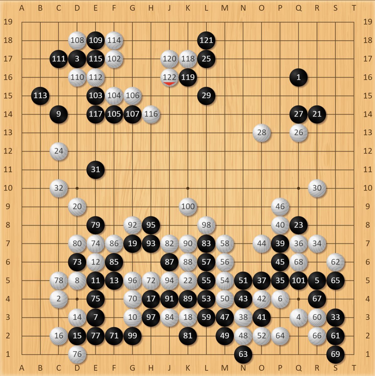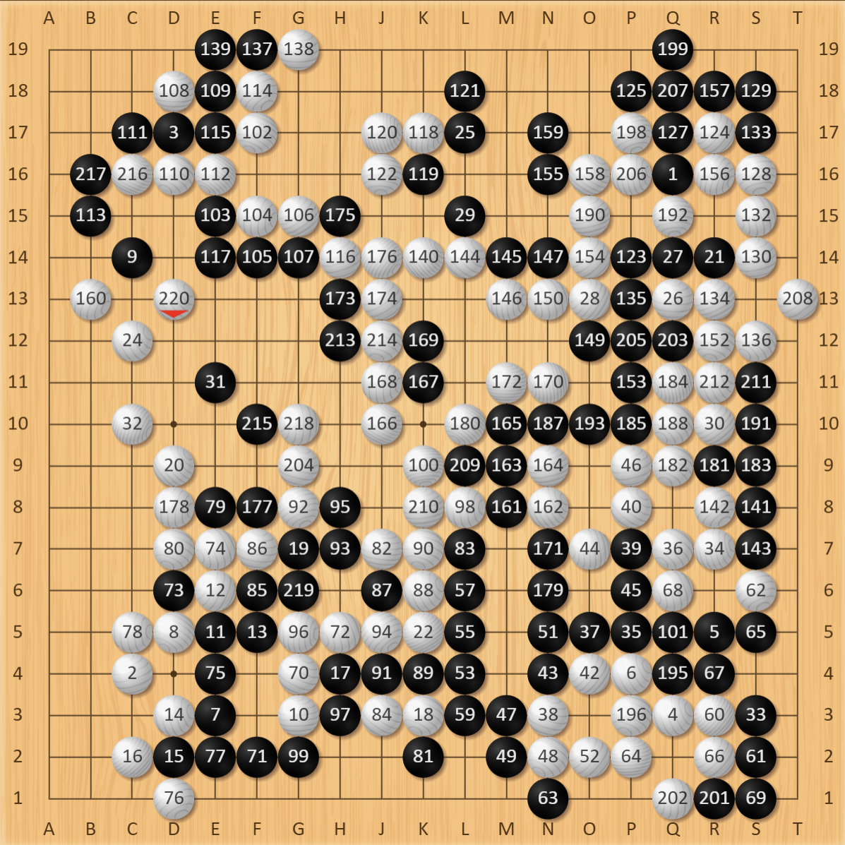 后续双方棋手虽然又继续下了近百手,但丁浩依靠自身强大的控盘能力,牢牢地掌握住优势,最终至白220手,王星昊发现大势已去后,投子认负。