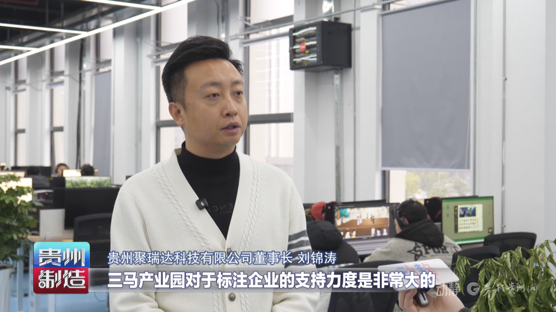 贵州聚瑞达科技有限公司董事长刘锦涛说,三马产业园对于标注企业的支持力度是非常大的,从物业上面、水电上面甚至是业务入口方面,是属于保姆式跟踪。他们企业已经有比较多的业务体量,困扰他们最多的就是人才问题,云岩区通过产教融合的方式,也联系了很多的高校,在人才梯队的构建上,给到了他们企业很多助力。