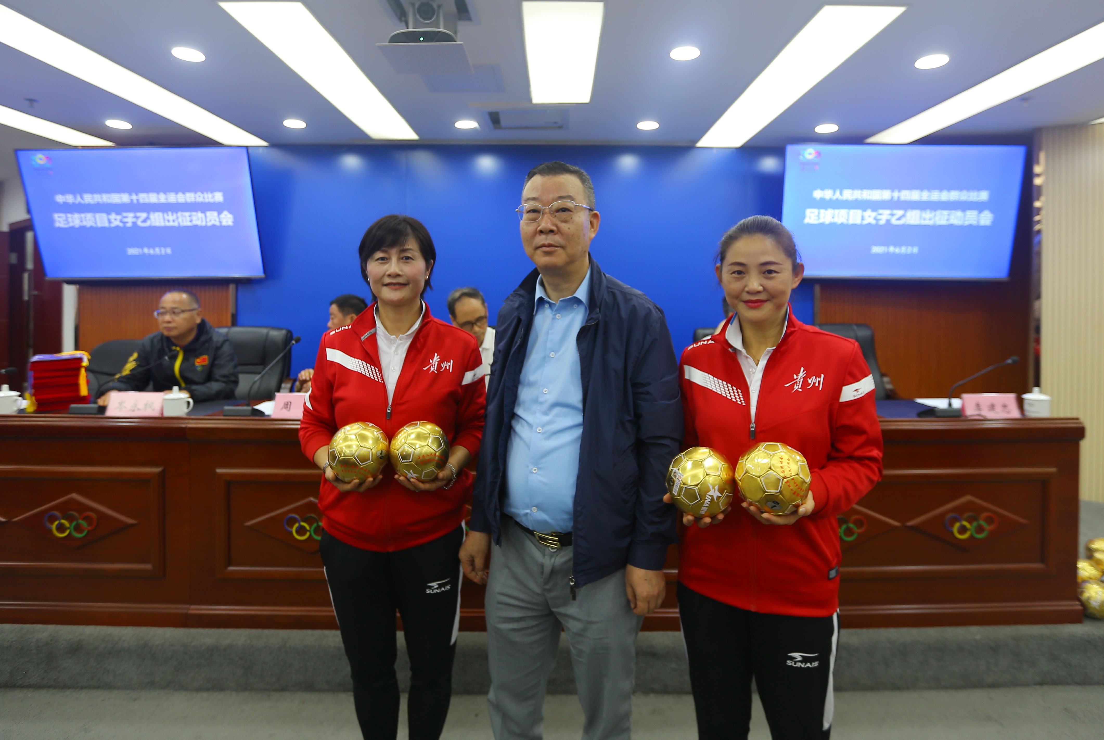6月2日上午,在贵州省体育局举行了第十四届全运会群众比赛足球项目女子乙组出征动员大会。省体育局一级巡视员王建忠、省体育局群众体育处处长靖琦伟、贵州省足协秘书长周军、贵阳市体育局副局长黄俊、 贵阳市足协秘书长岑永枫、贵阳市南明区文体广电局党组书记李建中等领导出席了本次大会。