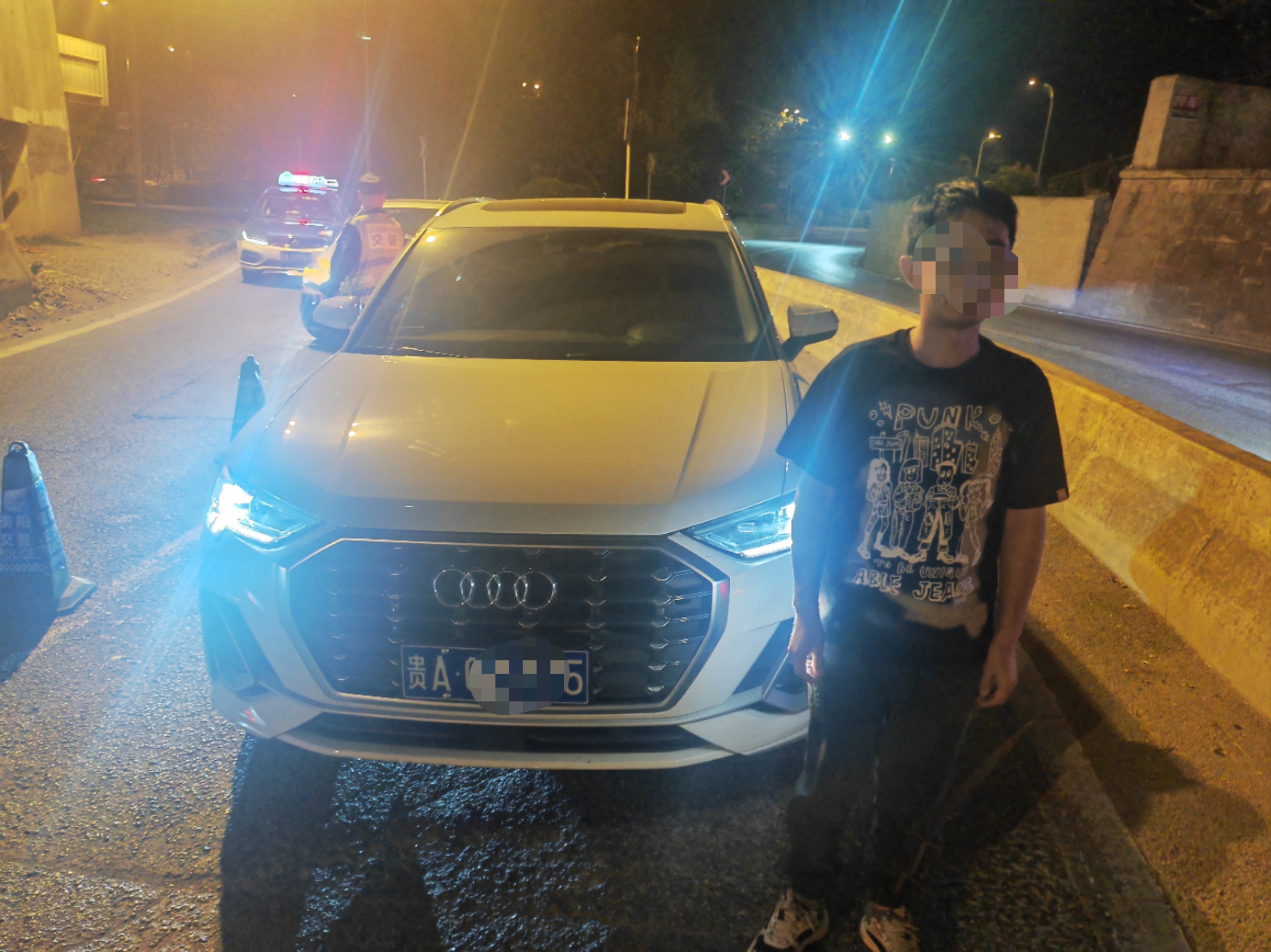 2023年4月5日凌晨,南明交警四中队民警按照分局统一安排在五里冲路设置夜间查缉卡点,预防涉酒道路交通事故发生,提升群众安全感满意度。