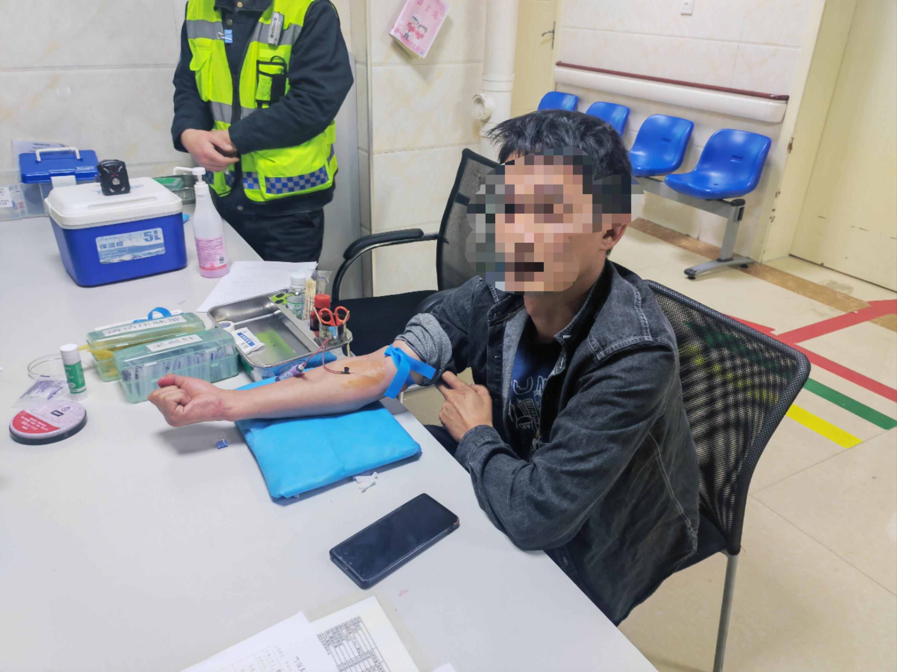 由于曾某涉嫌醉酒后驾驶机动车的违法行为,民警依法对其开具道路交通管理行政强制措施凭证,并将曾某带到医院进行血样提取。