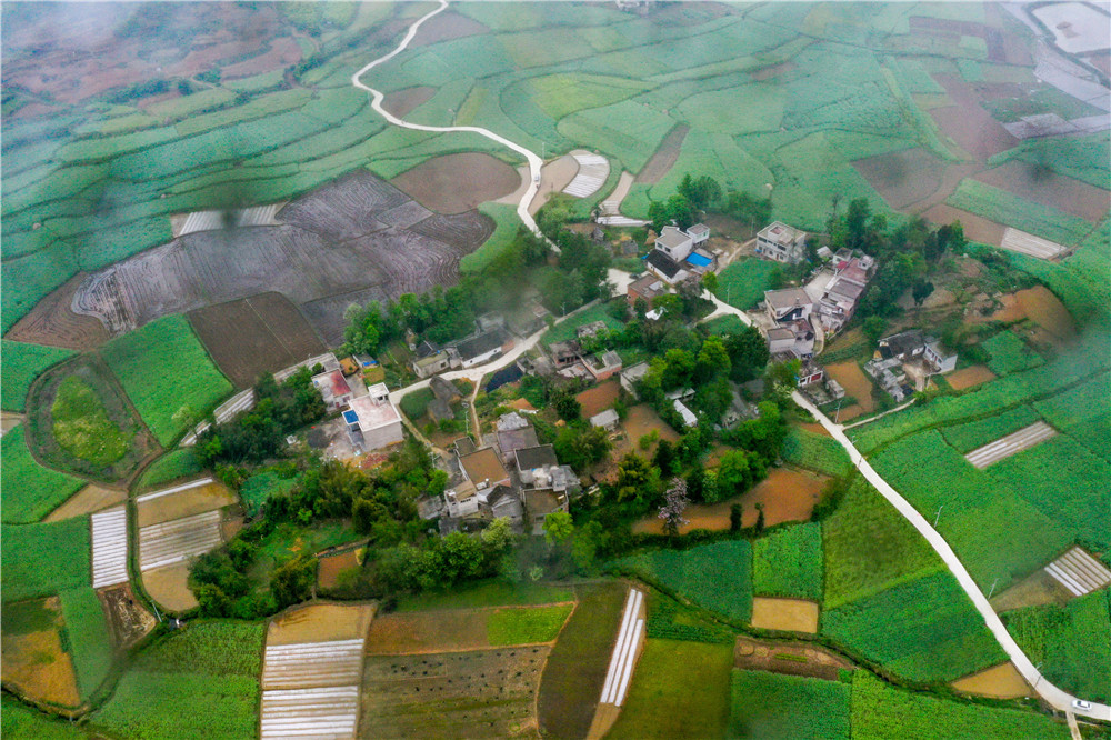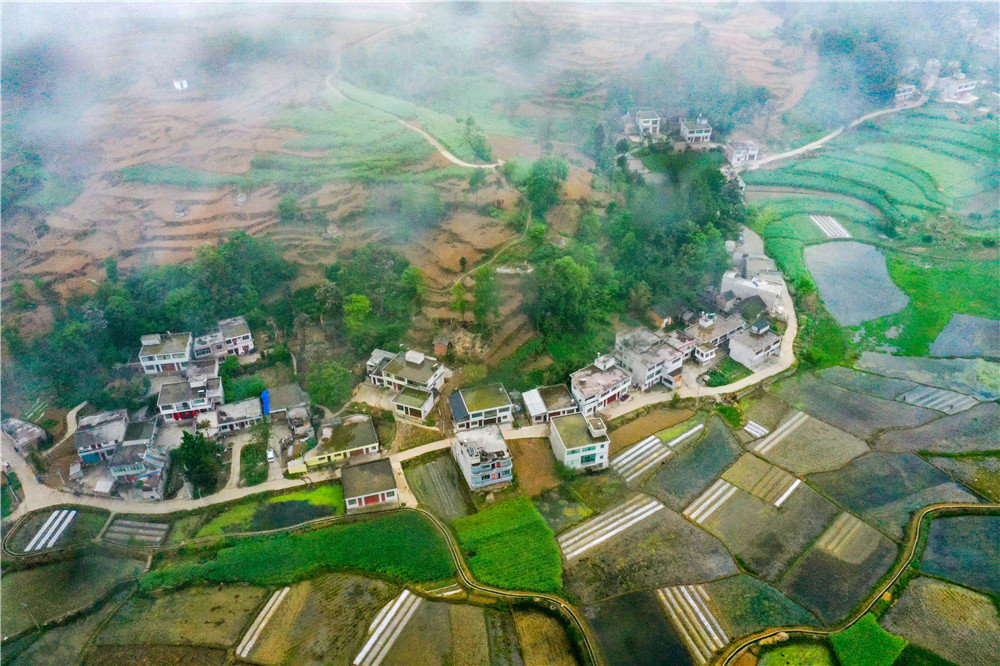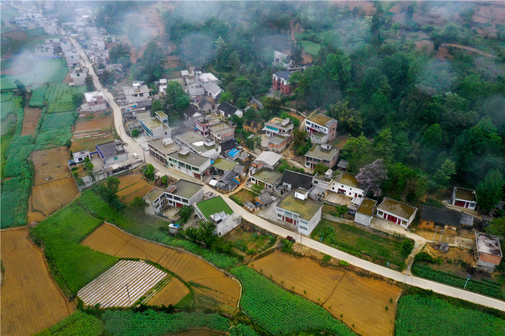 鸟瞰黔西市锦星镇木渣黑社区田坝寨。