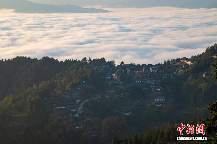 贵州从江:初冬云海绕侗寨