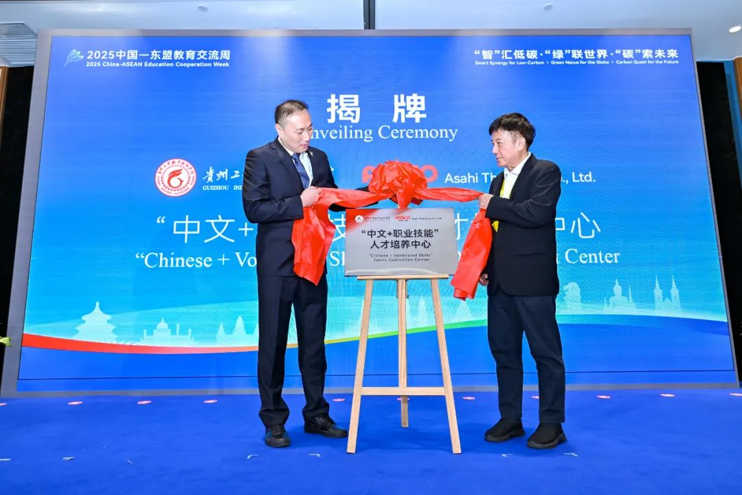 贵州工业职业技术学院分别与马来西亚青年英才学院、Asahi Thai Alloy Co.,Ltd.签署合作协议,同时,贵州工业职业技术学院与Asahi Thai Alloy Co.,Ltd.共建的“‘中文+职业技能’人才培养中心”正式揭牌,该中心将为区域培养兼具中文能力与专业技能的复合型人才,助力国际产能合作与人文交流。
