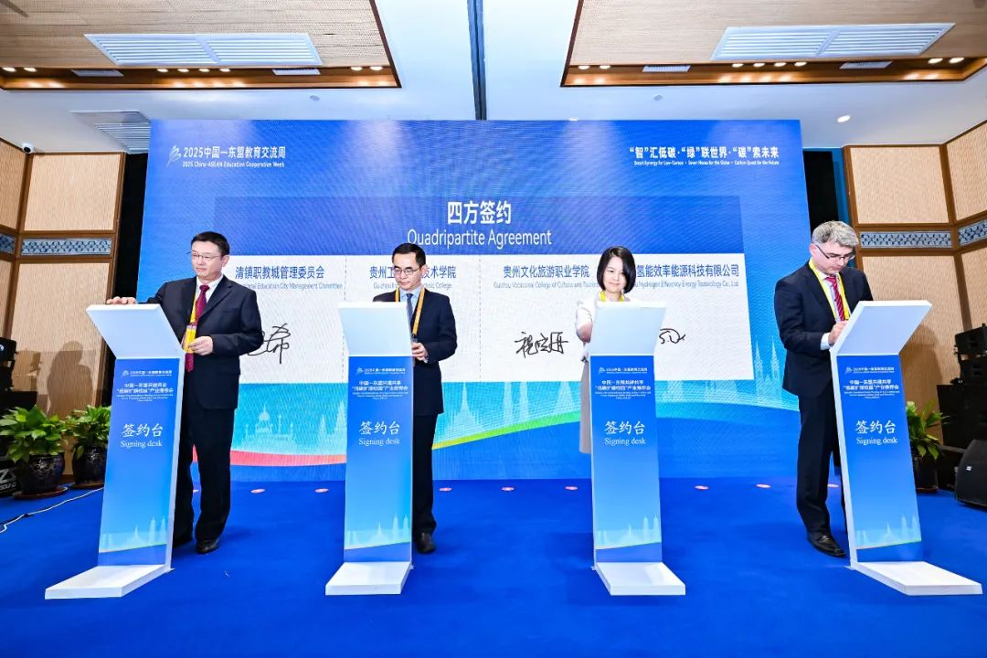 随后,活动现场举行了签约暨揭牌仪式。清镇职教城管委会、贵州工业职业技术学院、贵州文化旅游职业学院与贵州氢能效率能源科技有限公司携手落笔,四方将依托各自资源优势,在产教融合、氢能技术应用等领域开展深度合作,共同推动相关产业高质量发展。