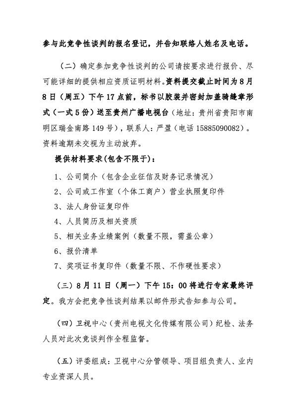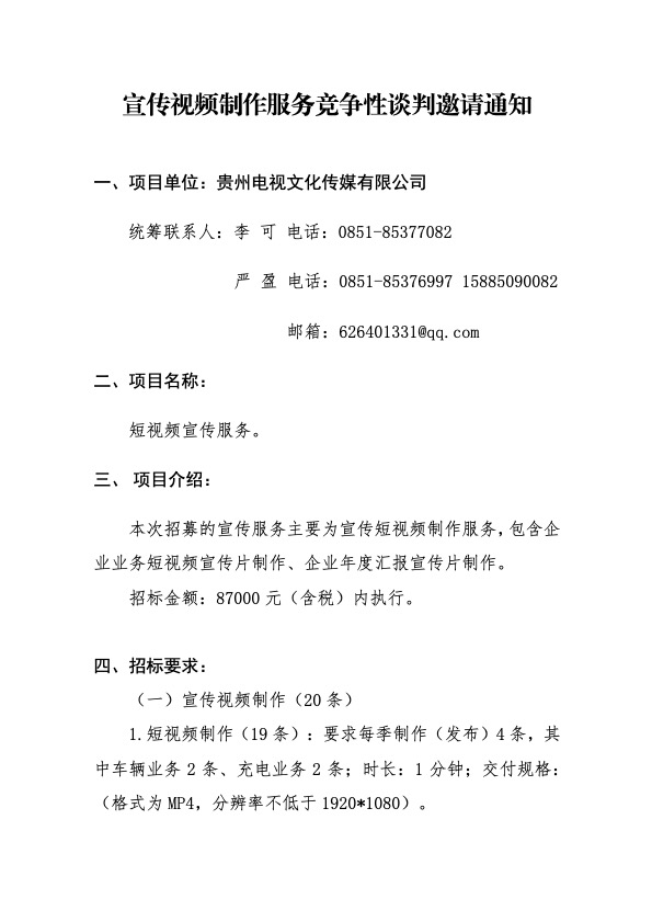 视频类宣传服务竞争性谈判邀请