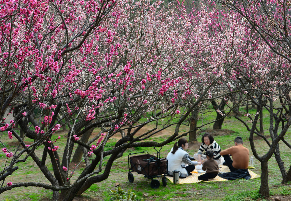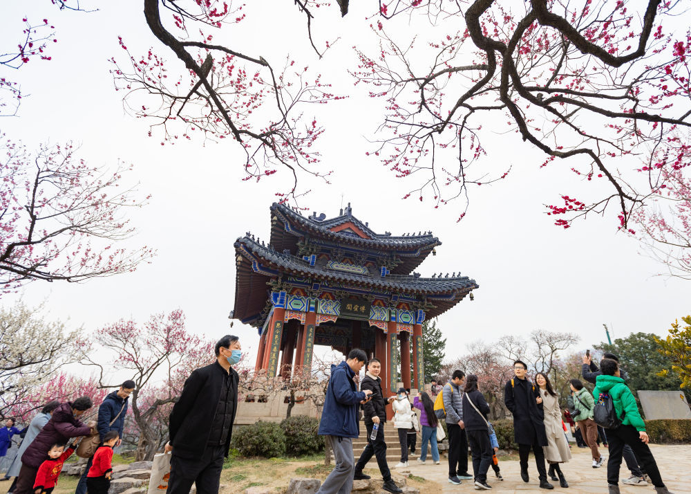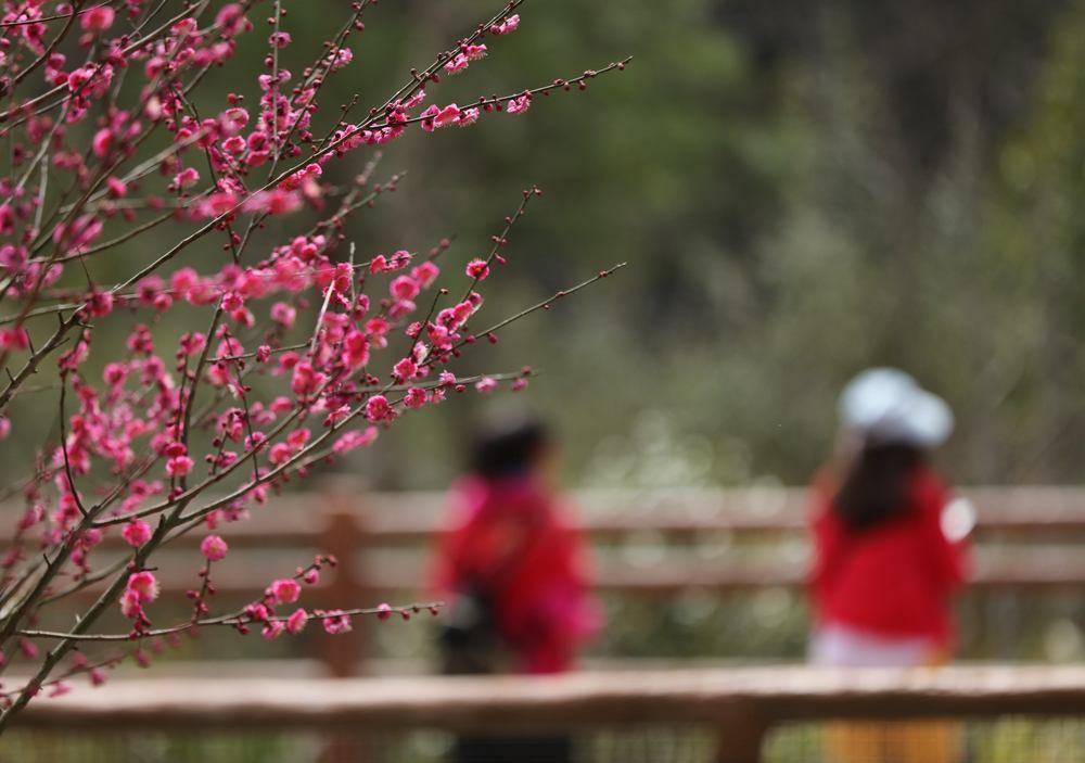 游客在江苏南京梅花山赏花。新华社发(苏阳摄)