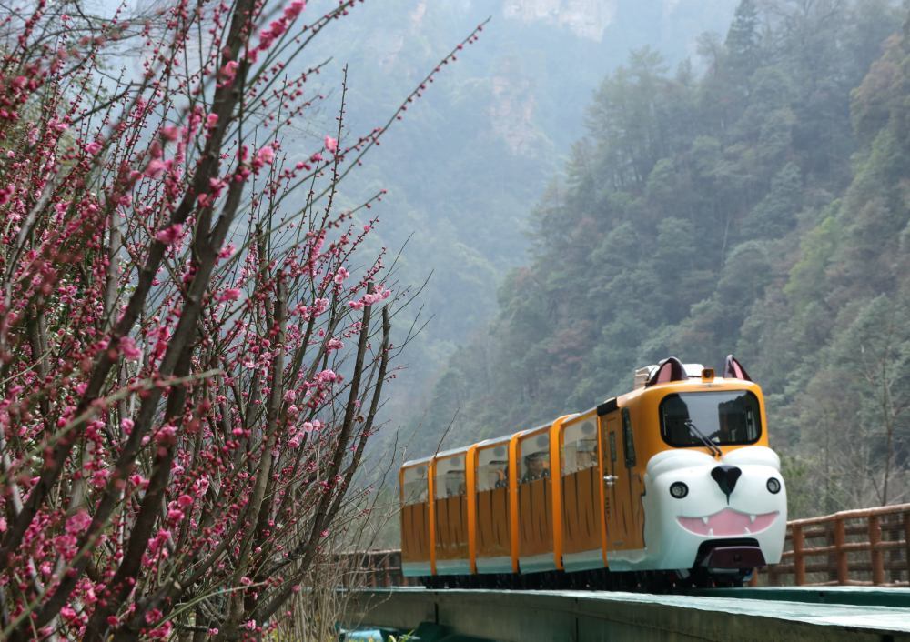 游人乘坐十里画廊观光电车在湖南张家界国家森林公园游玩。新华社发(吴勇兵摄)