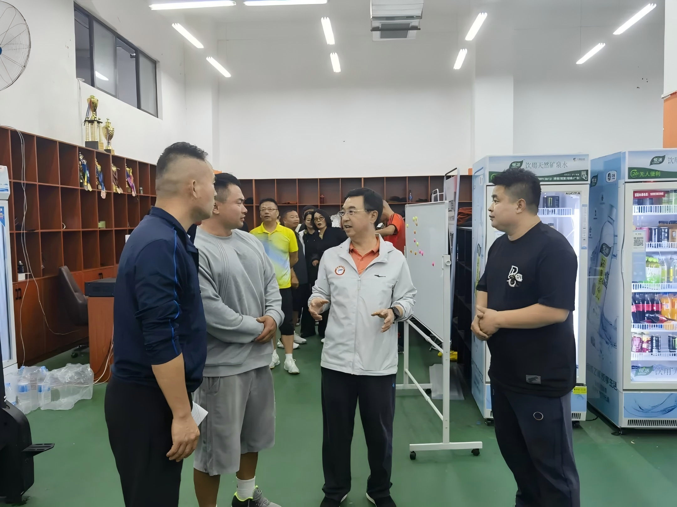在贵州理工学院党委副书记胡兴灿的陪同下,调研组参观了室内、室外的匹克球场,并详细了解匹克球场地建设和项目推广情况。