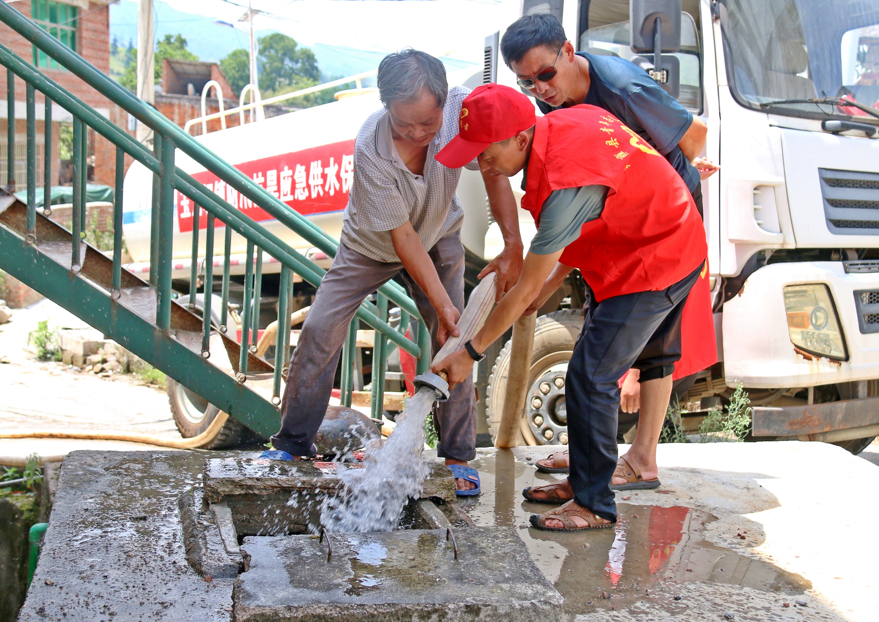 昨天(8月23日),纳雍县水务局联合玉龙坝镇政府为该镇仓边社区、水淹坝社区因干旱缺水群众提供送水上门服务,解决群众用水困难。